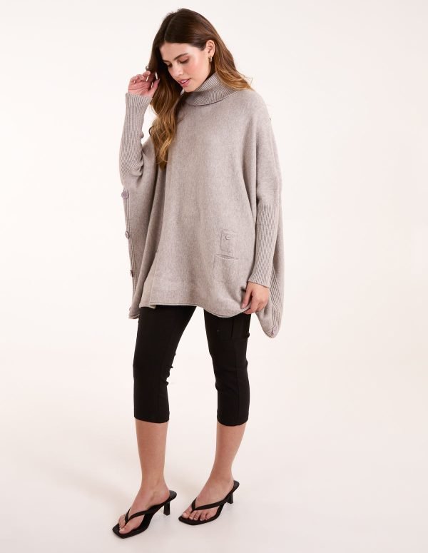 Roll Neck Button Mini Pocket Jumper