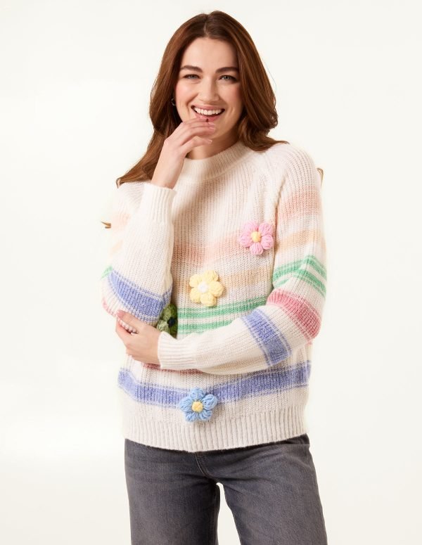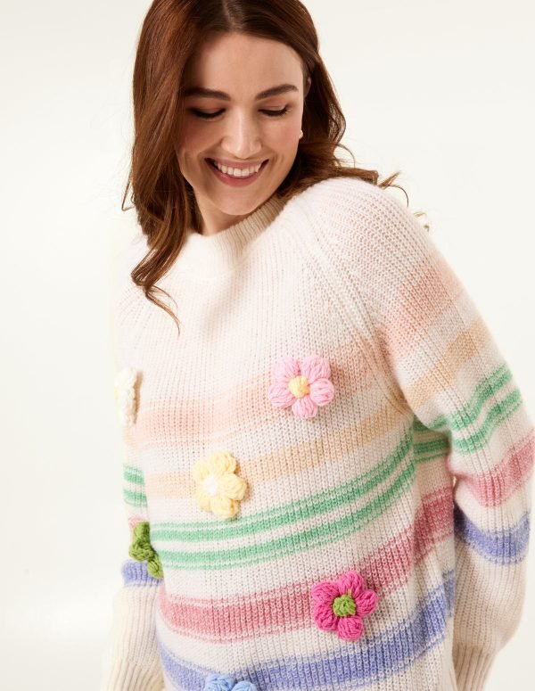 Colourful 3D Flower Jumper With Stripes