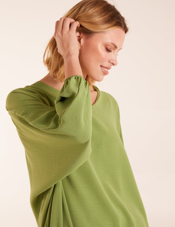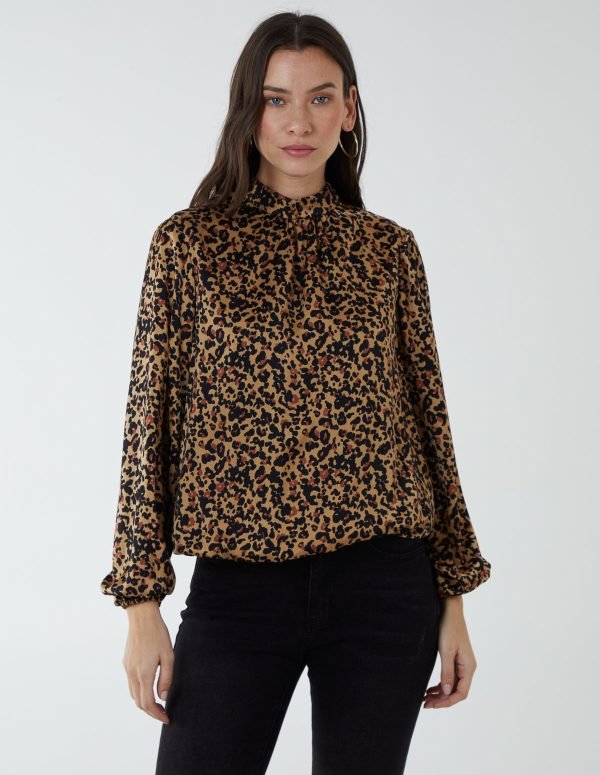 Leopard Print Elasticated Sleeve Wrap Front Elastic Hem Top