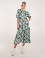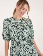 Abstract Elasticated Tie Waist Midi Dress
