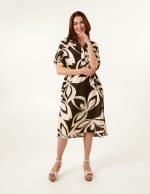 Abstract Print Collarless Shirt Dress