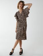 Leopard Print Wrap Ruffle Midi Dress
