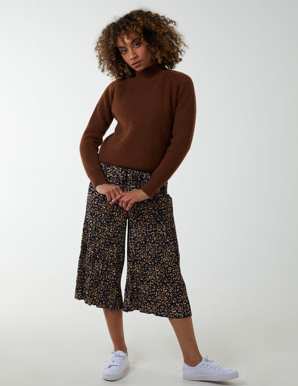 Check out the print! Comfy elasticated waist cropped trousers with animal print.