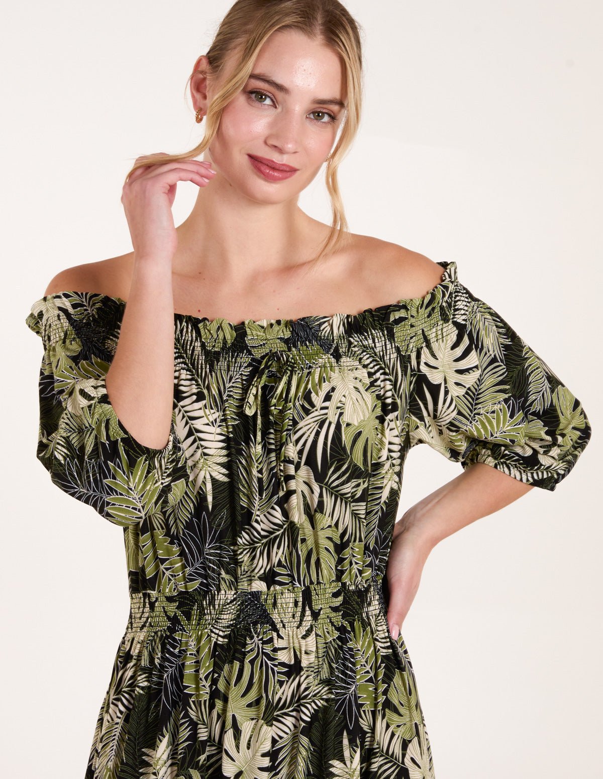 Say hello to your new bestie when it comes to daily style dilemmas. This tropical shirred dress with a fun everyday option.