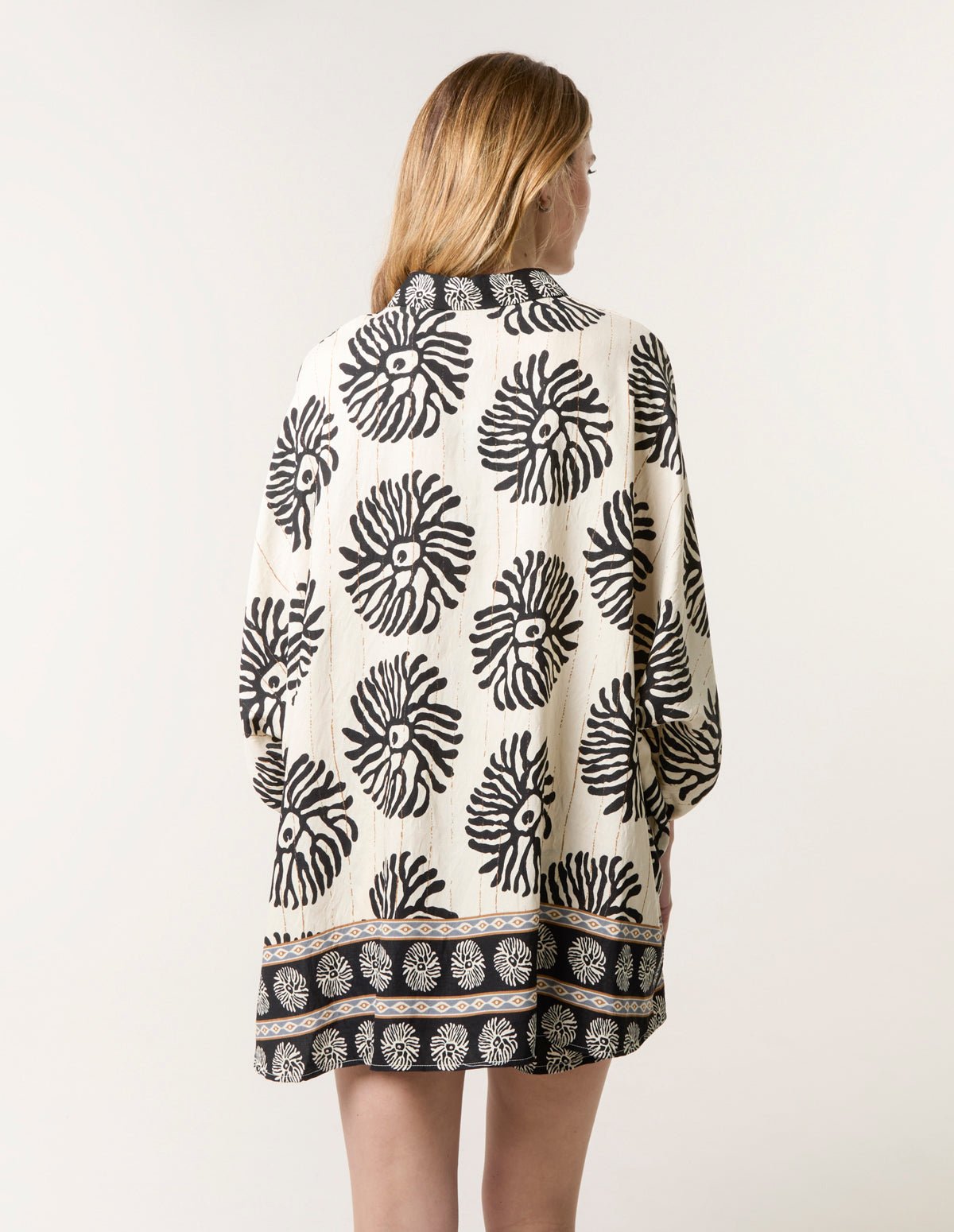 This abstract printed linen, breezy shirt is your perfect option for summer when your wanting to create a formal kind of look. Team with white chinos and pumps.