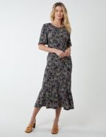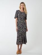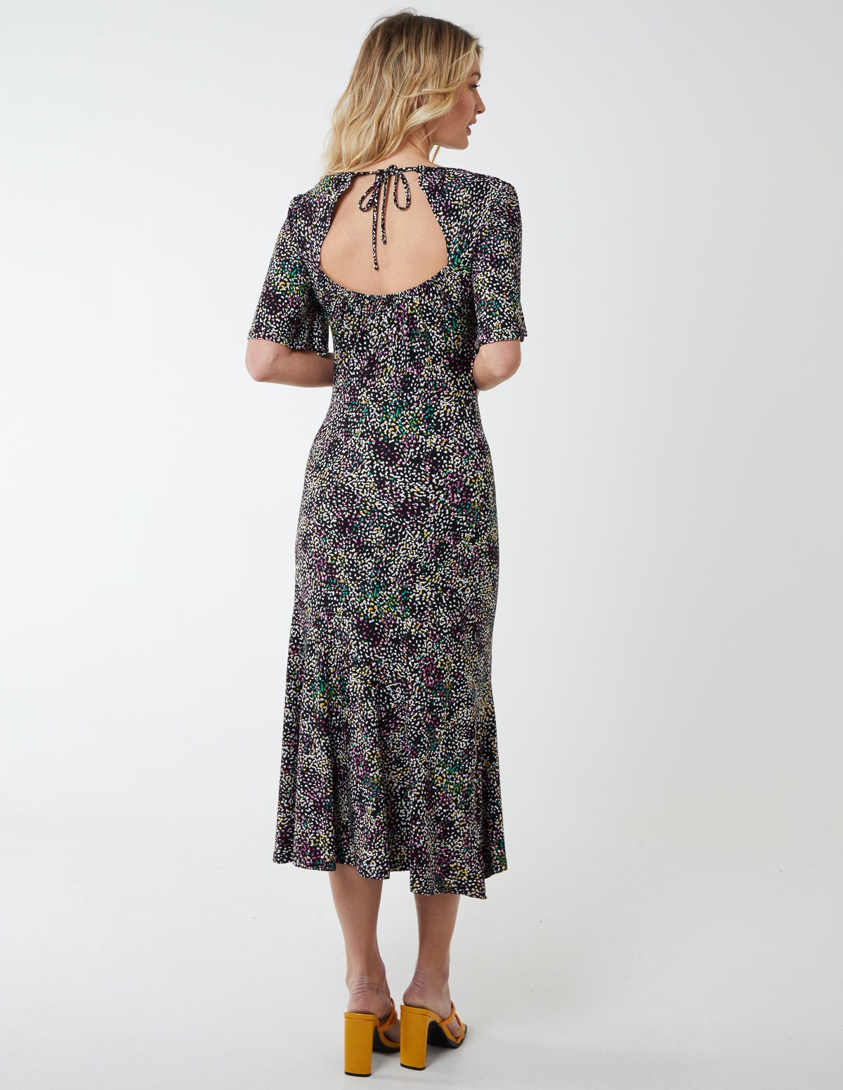Printed Frill Sleeve Wrap Front Belted Waist Dress