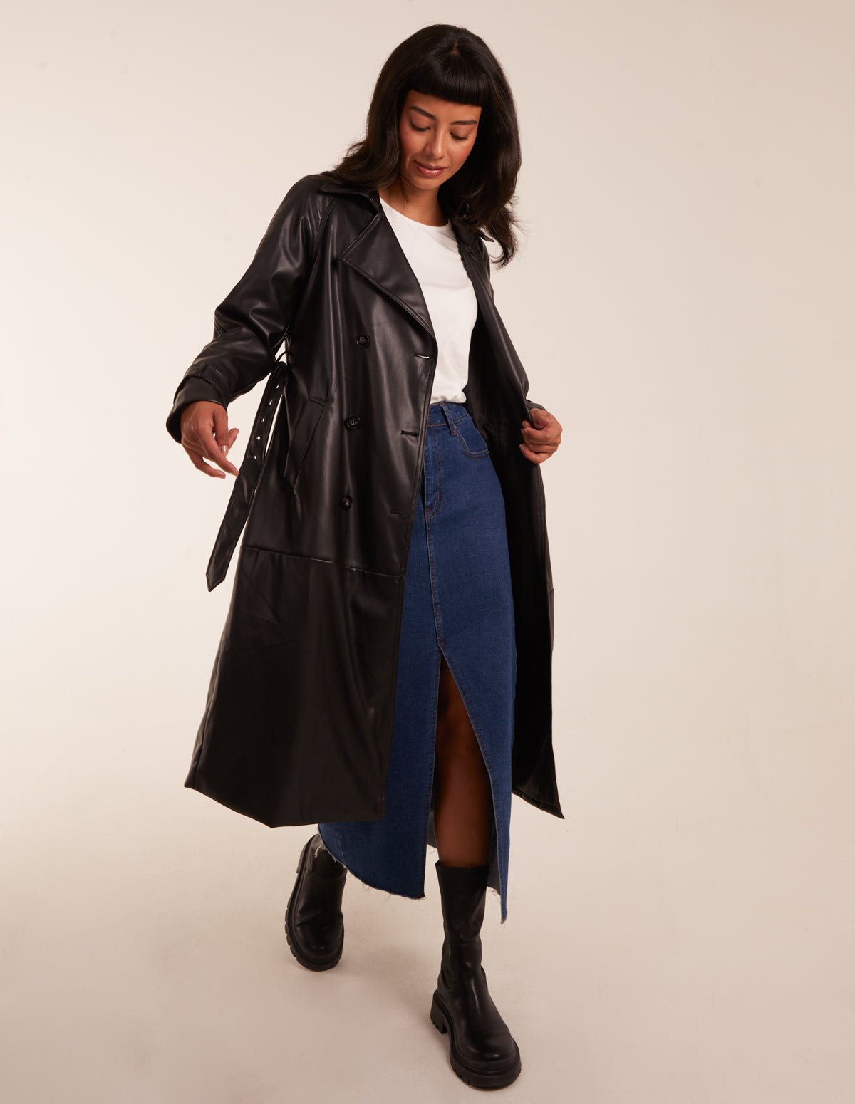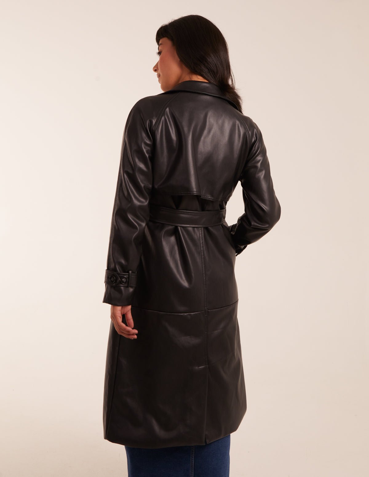 Faux Leather Belted Trench Coat