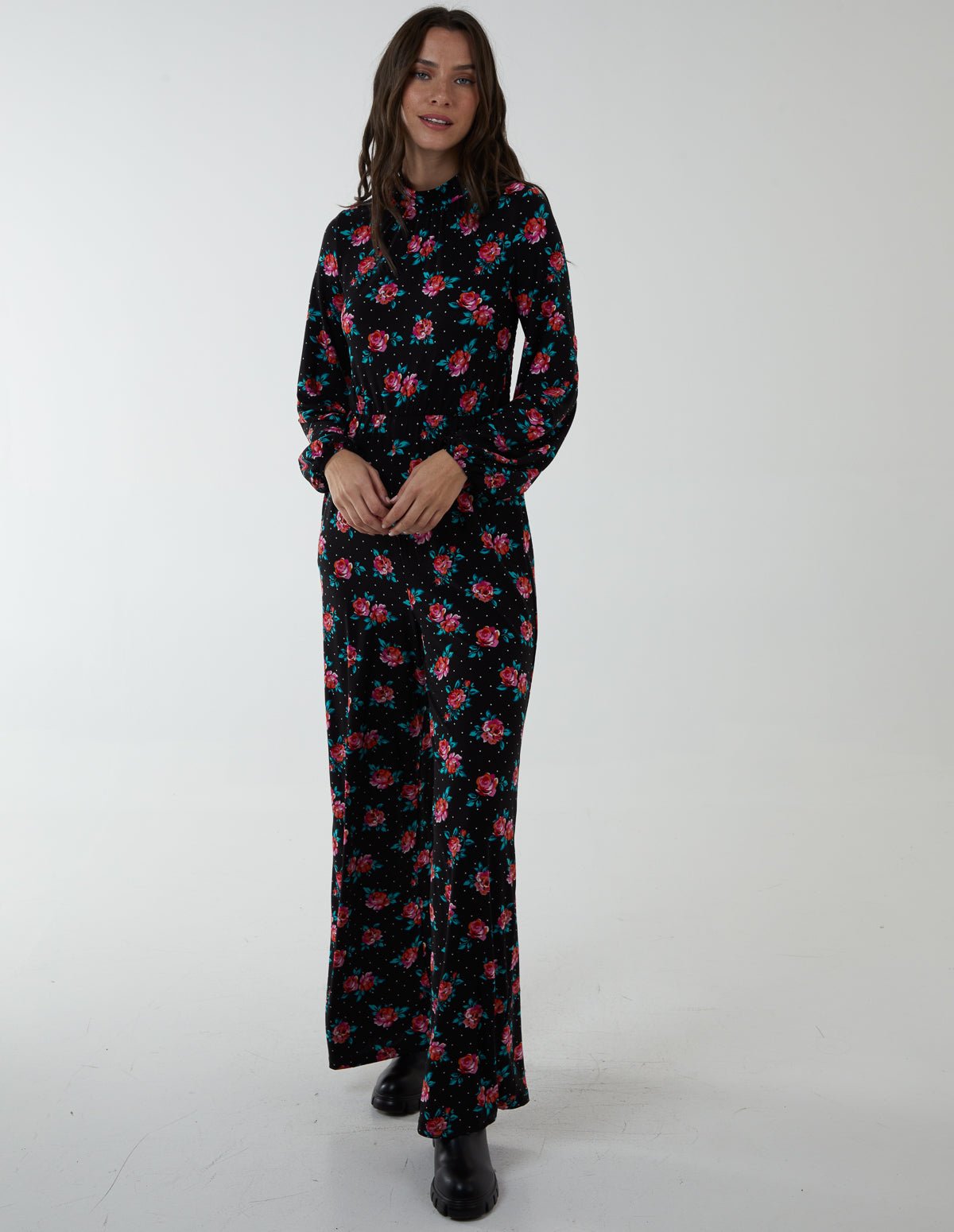 Jumpsuit – A style that you can wear at any season. For colder days, this full-leg length jumpsuit with a high neck and long sleeves can help you stay warm. It also features an elasticated waistline and a polka dot pattern. Stay classy at both your workplace or fun night outs by styling this jumpsuit with ankle boots and a small bag.