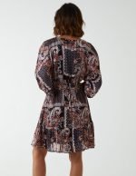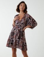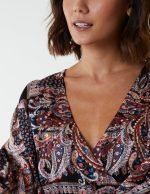 Paisley Wrap Front Pleated Kimono Sleeve Dress