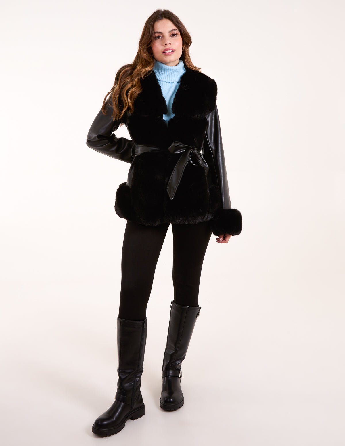 Keep warm, cosy and super stylish this Winter, wearing our lavish faux fur leather look jacket. This jacket will add a touch of style with whatever it’s teamed with.