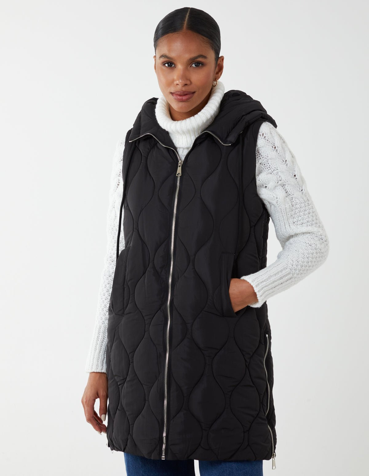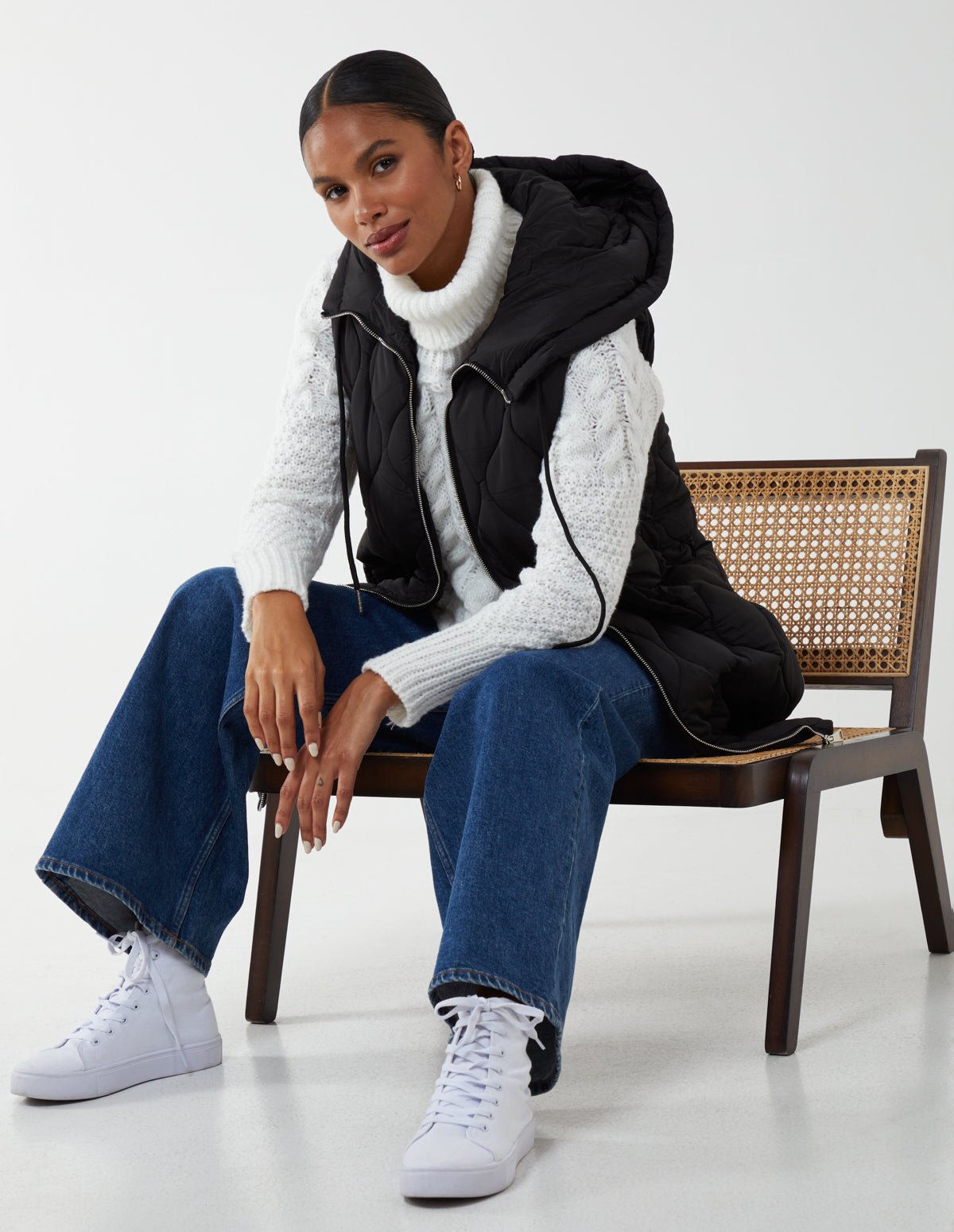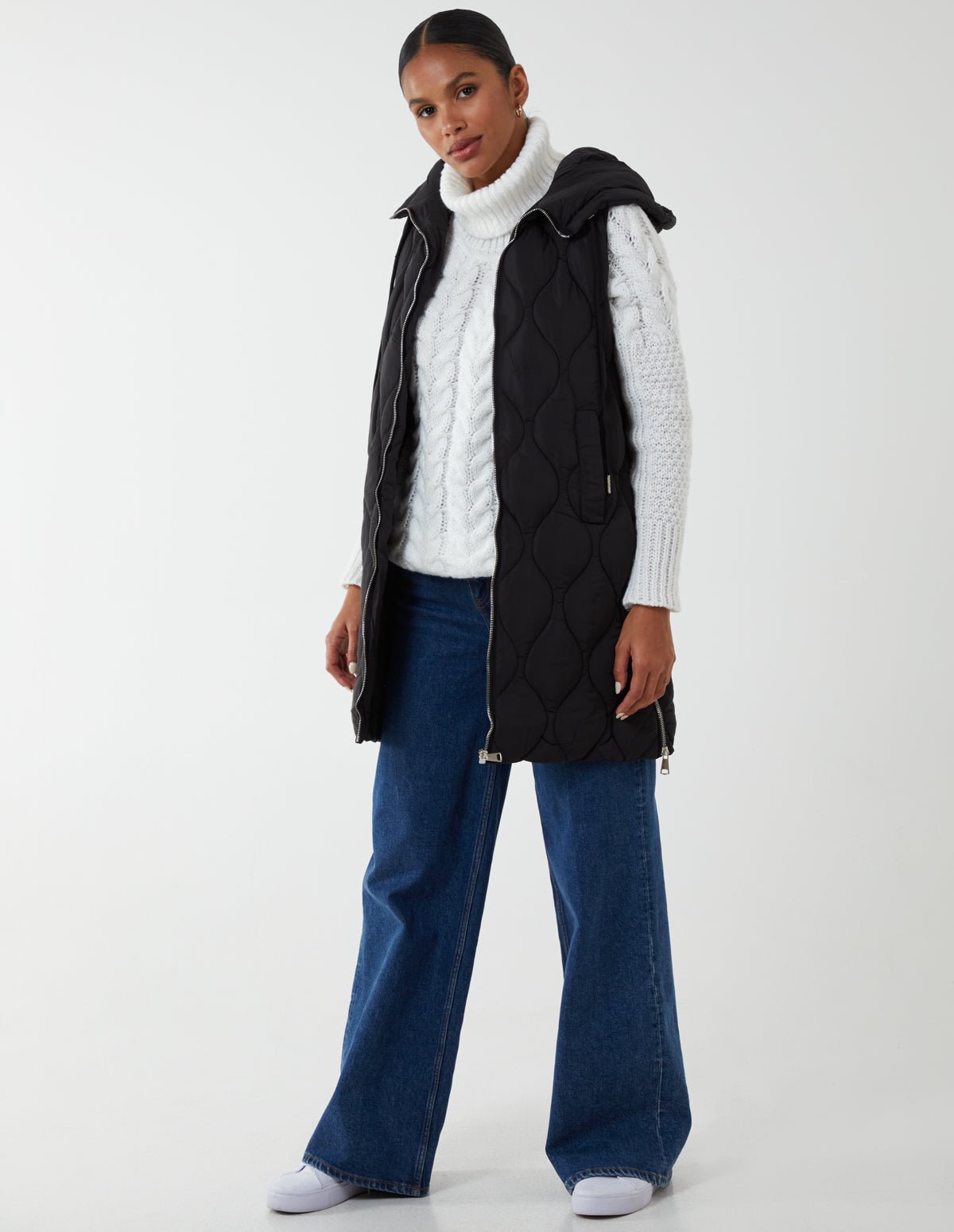 This Wave Quilted Gilet is ideal to add an extra layer of protection whilst remaining light weighted. It includes a zip front, pockets and a hoodie. Great for colder days, why not style this gilet by layering it over a black sweater, and complete high waisted skinny jeans and high knee boots? A style great for city breaks and casual weekends.