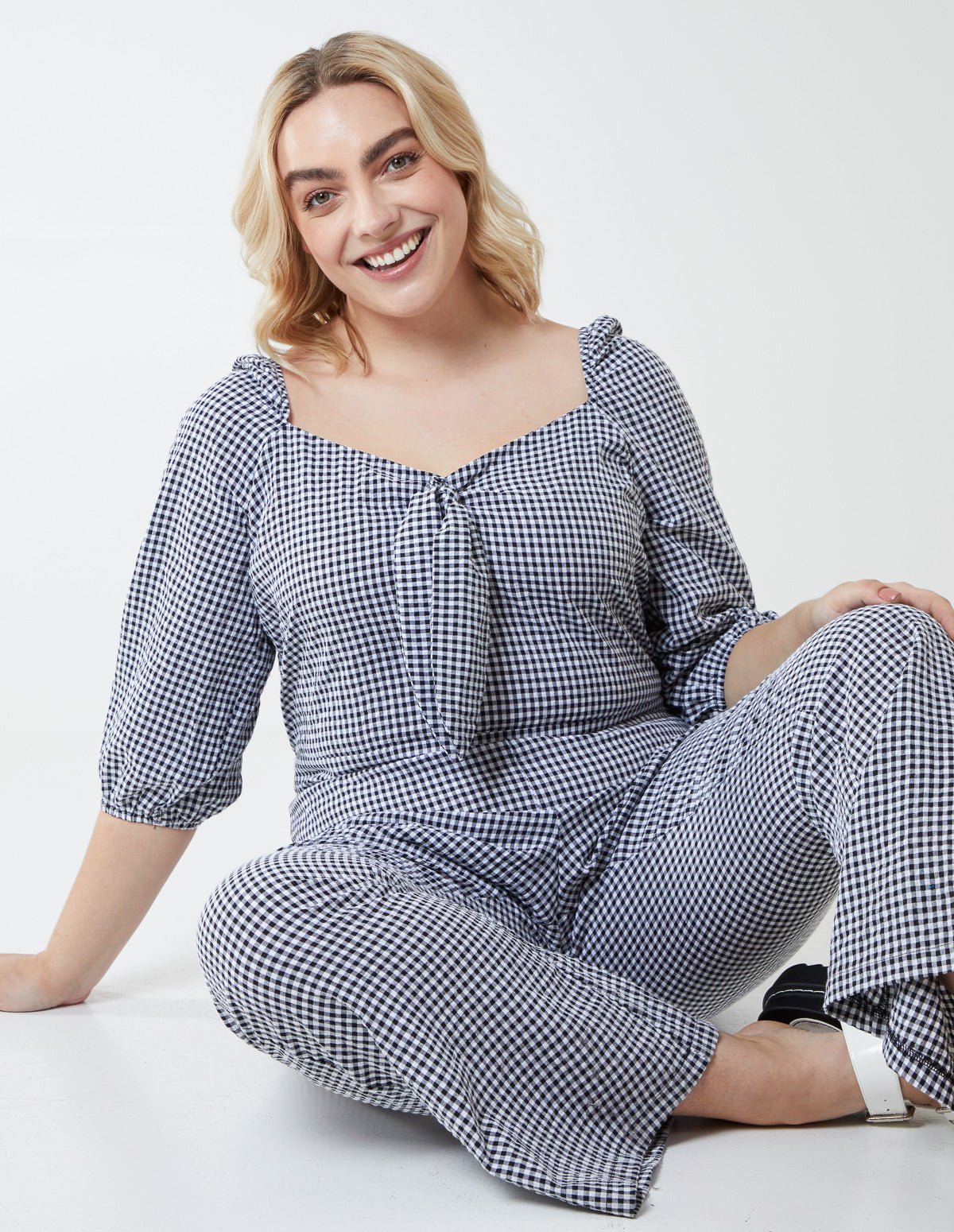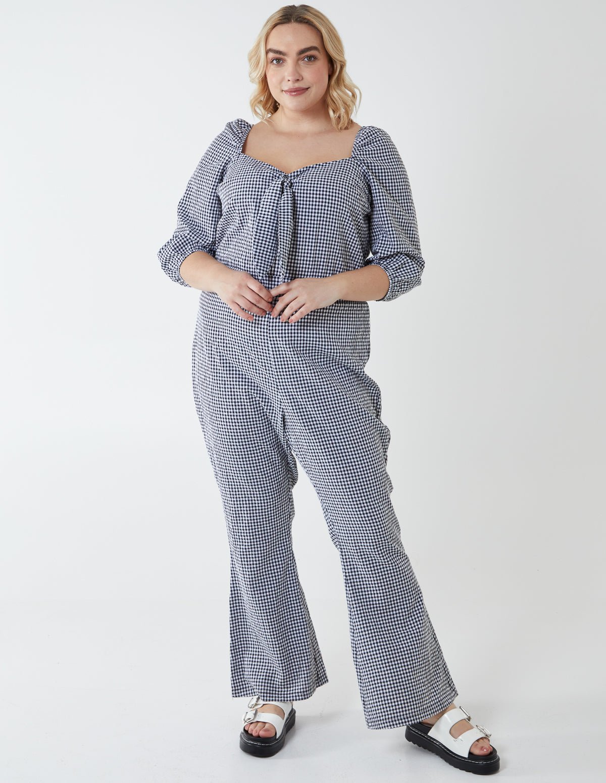 Curve Milkmaid Gingham Jumpsuit