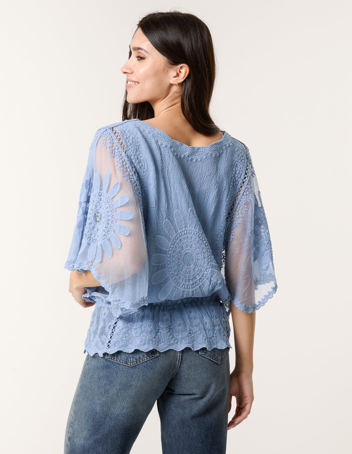 Sun Flower Lace Sleeve Blouse