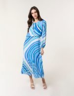 Swirl into the new season looking bright and funky wearing this pleated swirl print midaxi dress. Perfect for a special occasion when teamed with heels. Â Â Â