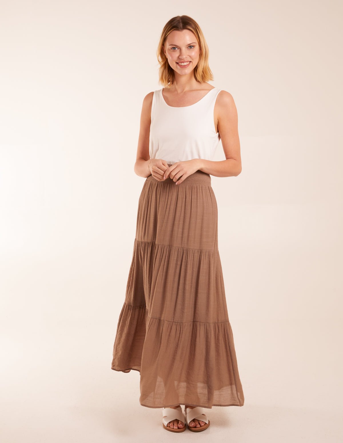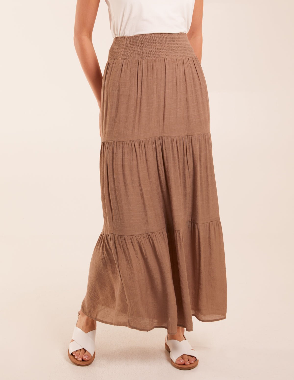Shirring Waist Tiered Maxi Skirt