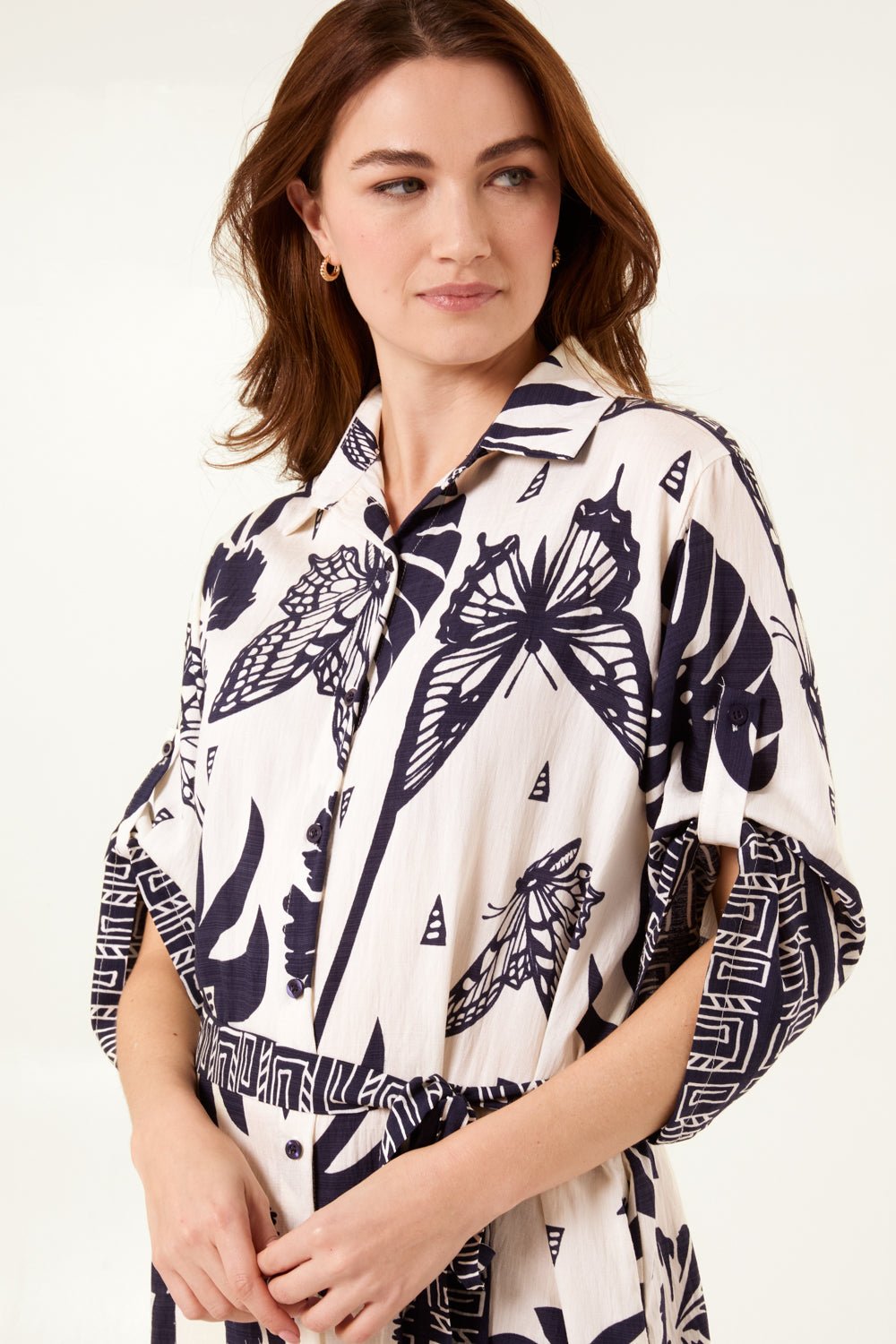 Butterflies & Tropical Printed Abstract Shirt Dress