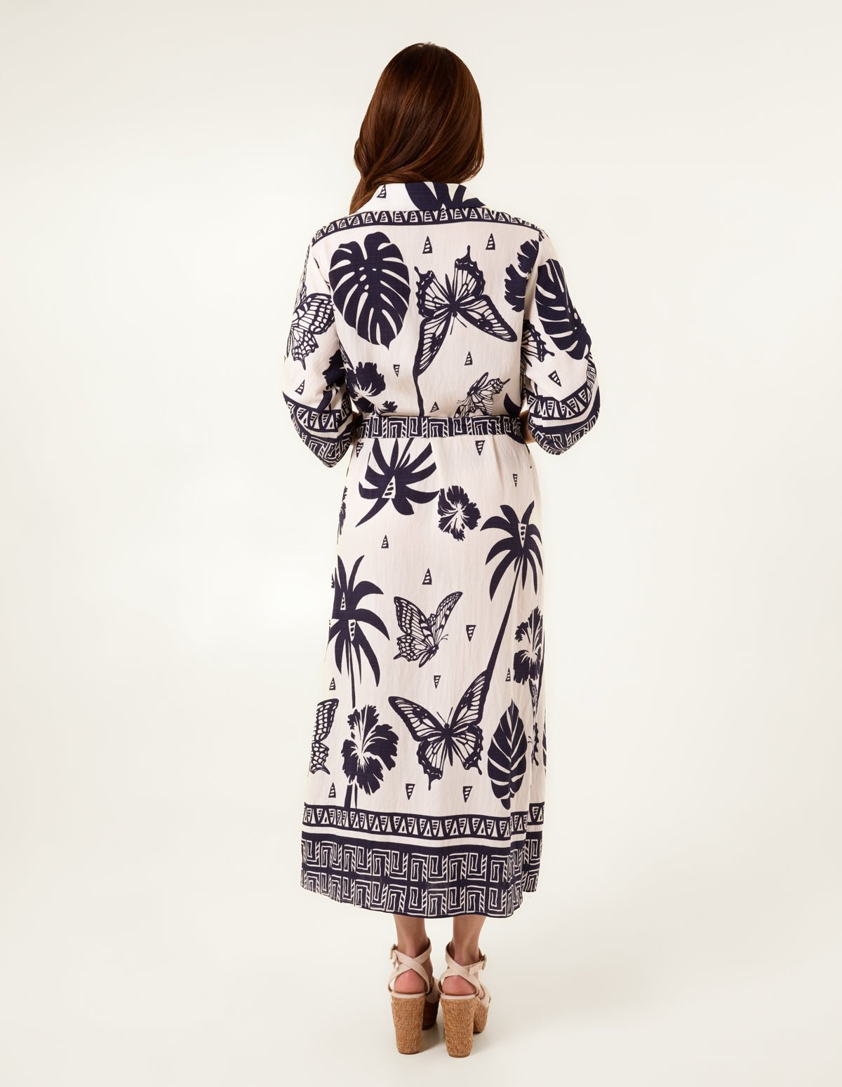 Butterflies and tropical prints are the perfect match! This light weight linen dress will be your new go-to, for the perfect trendy everyday option! Team with gold gladiators.