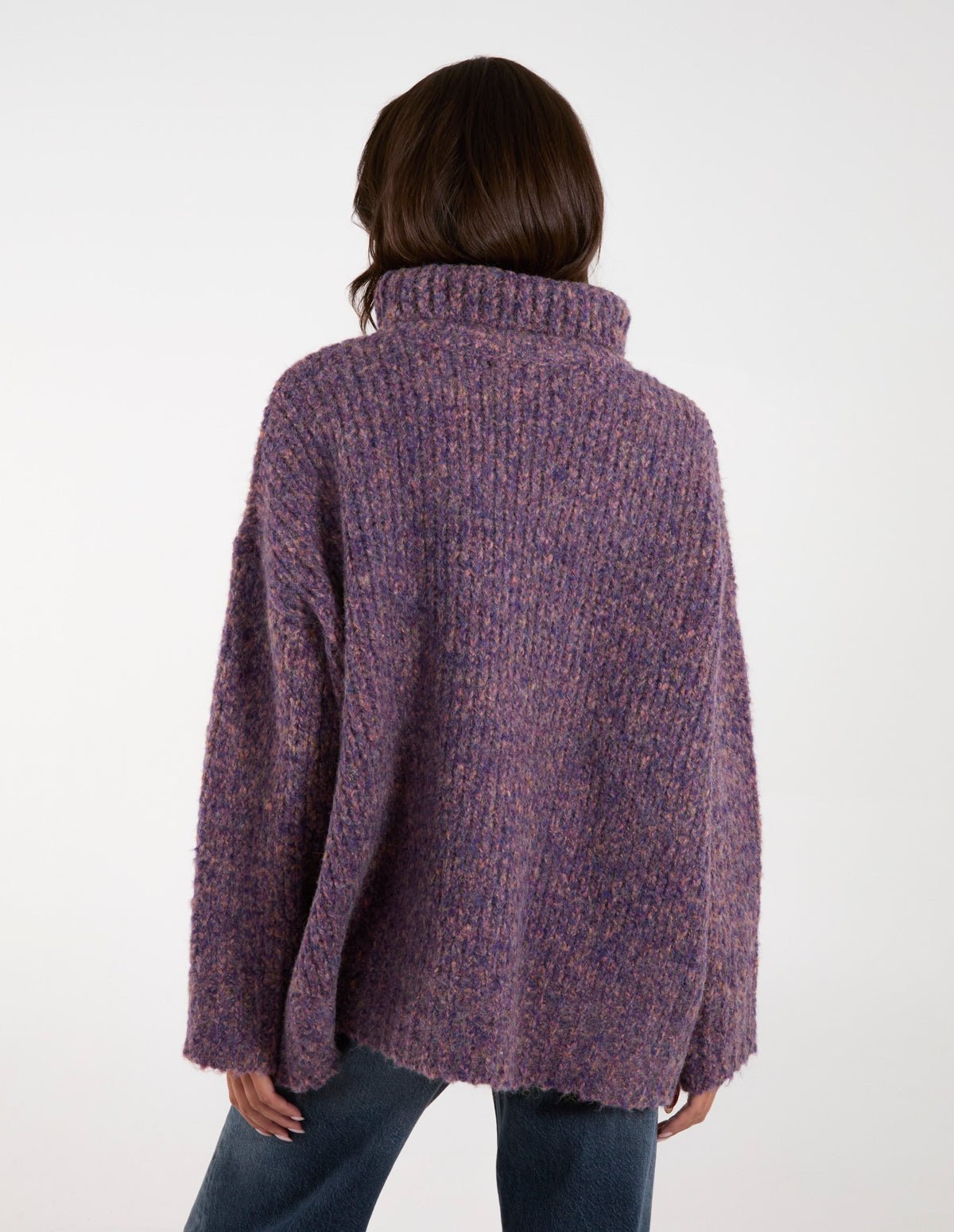 Get set for autumn/winter days with this chunky purple jumper. A pop of fun with its colour. Team this with beige mom jeans and pumps for the perfect everyday kind of look.
