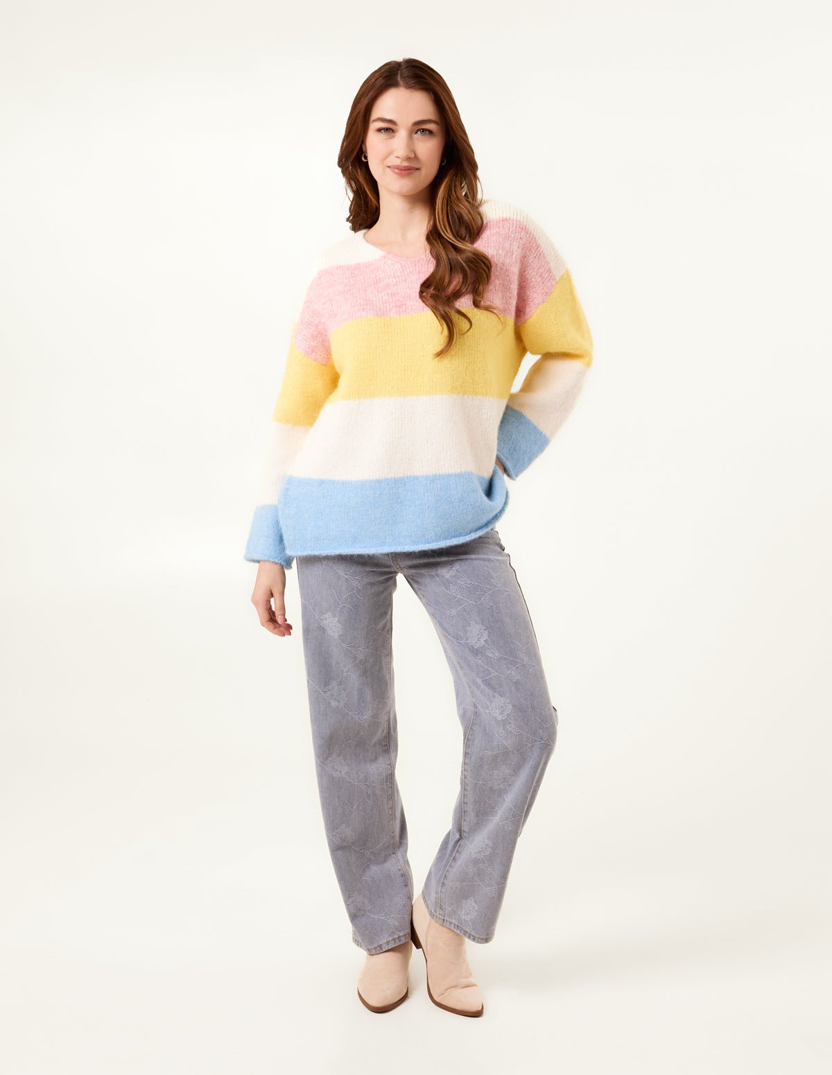 Colourful Stripped V Neck Jumper