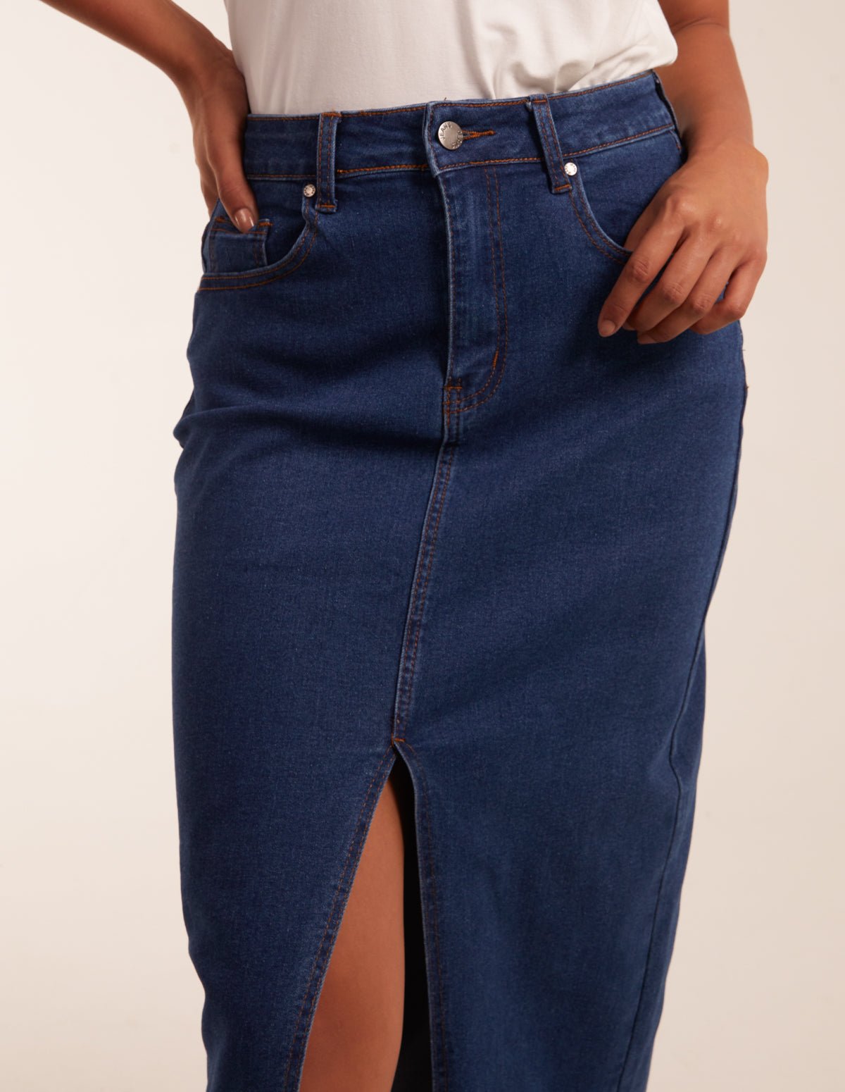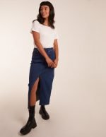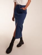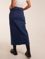 High Rise Denim Midi Skirt