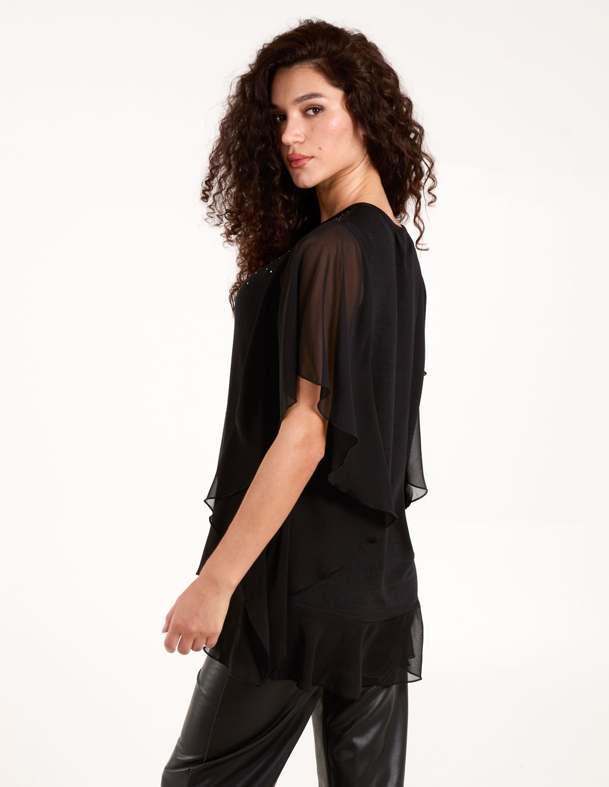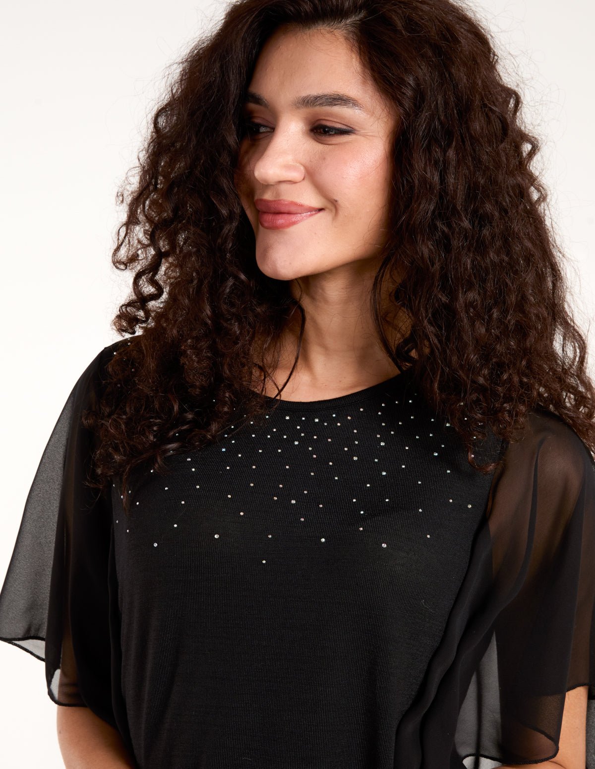 Why not add a touch of frills, ruffles and diamantes to your look this party season. Perfectly teamed with jeans and ankle boots. Â Â