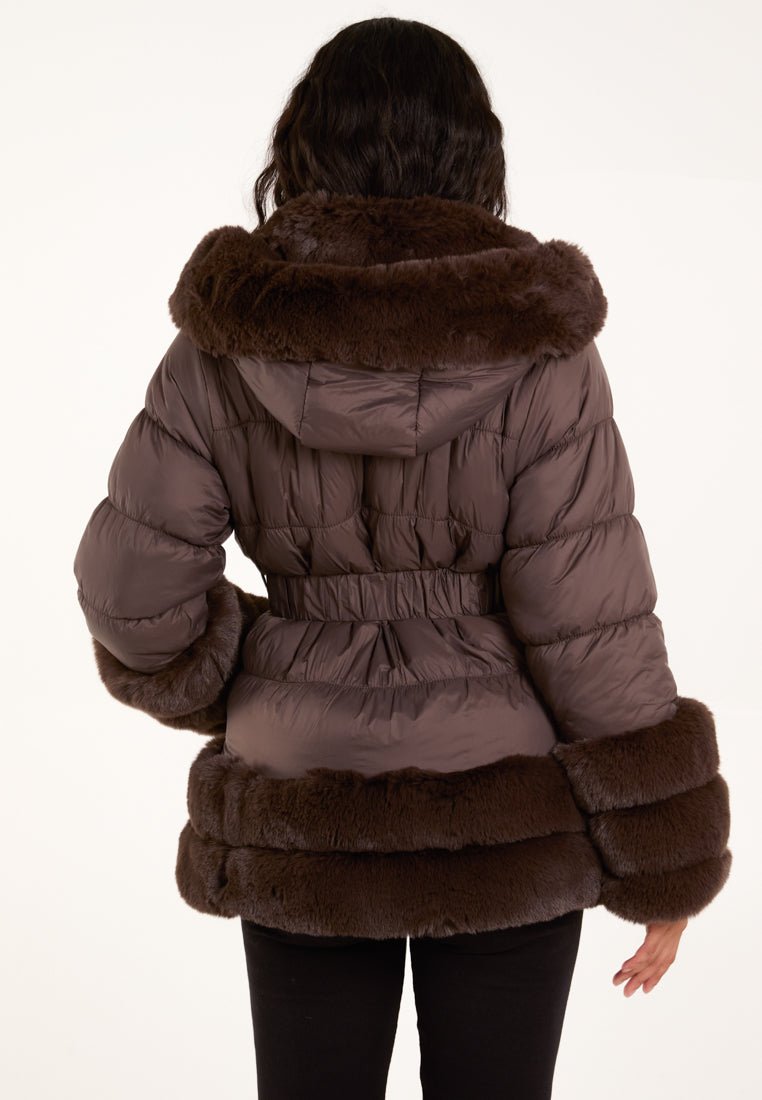 Faux Fur Trim Belted Puffer Coat