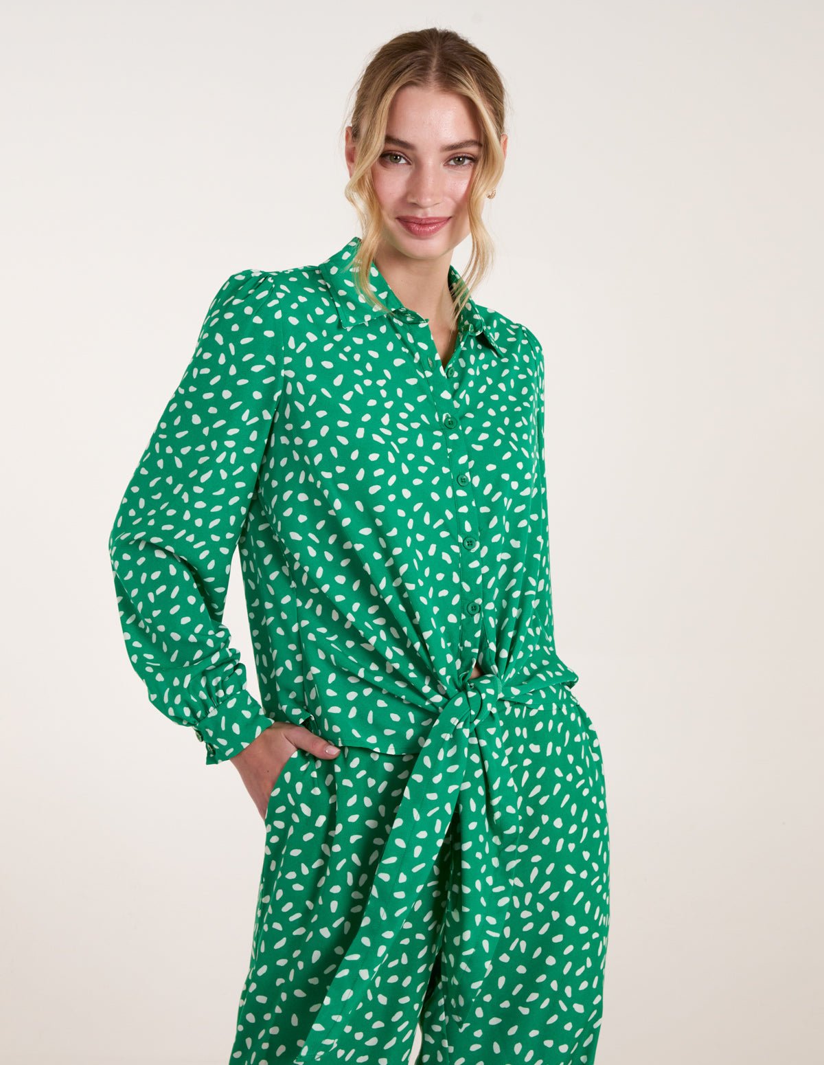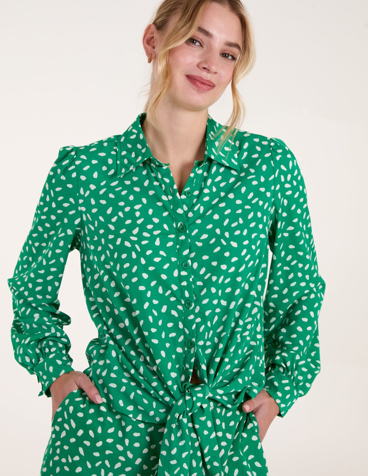 Polka dots will always save the day, being a styling hero. Team this shirt with chinos and pumps for the perfect office day look. Â Â Â
