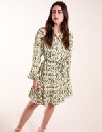 Printed Frill Sleeve Wrap Front Belted Waist Dress