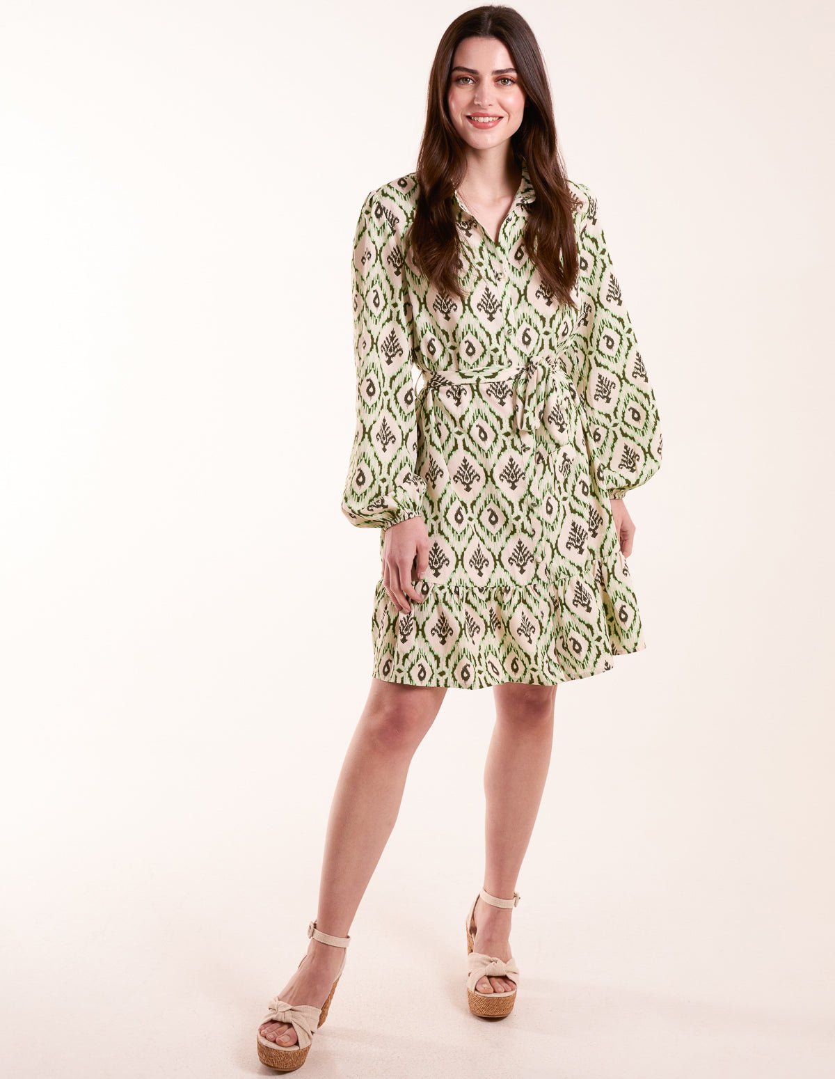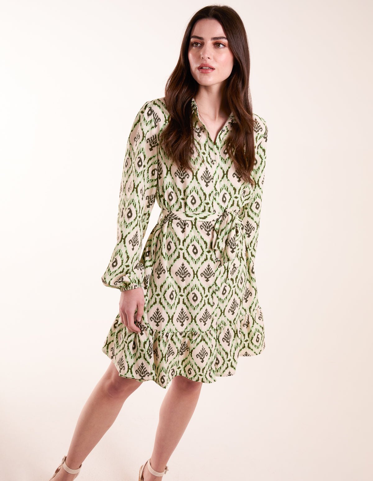 Long Sleeve Belted Shirt Mini Dress