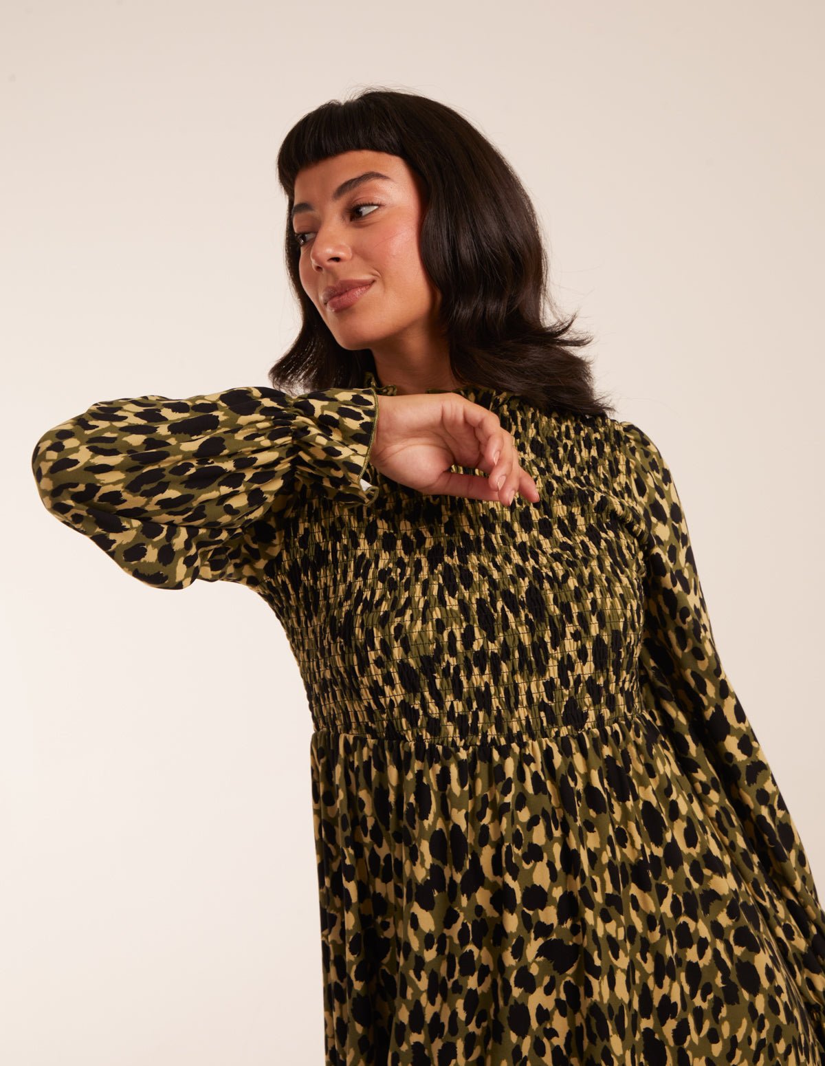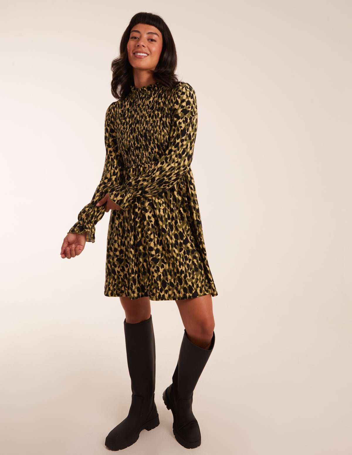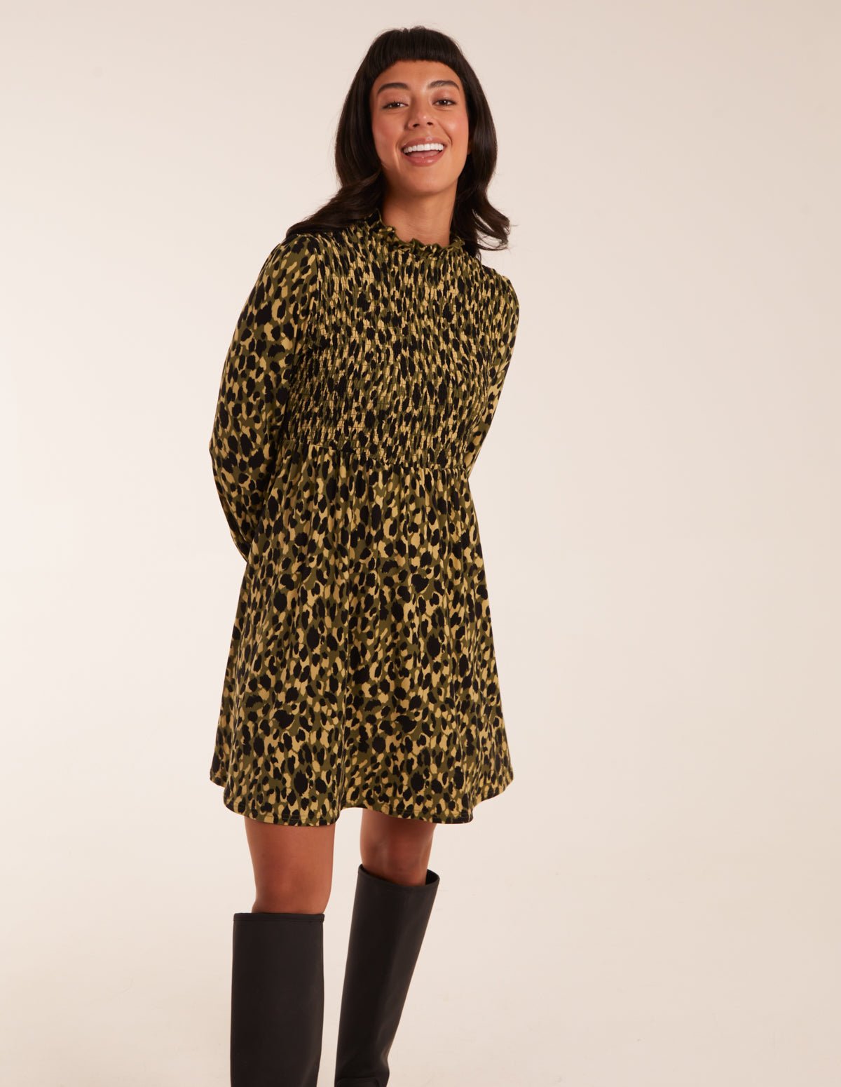 Take a walk on the wild side this AW, wearing this frill high neck leopard print mini dress! Team this little number with tights and knee high boots on those colder days ahead!Â