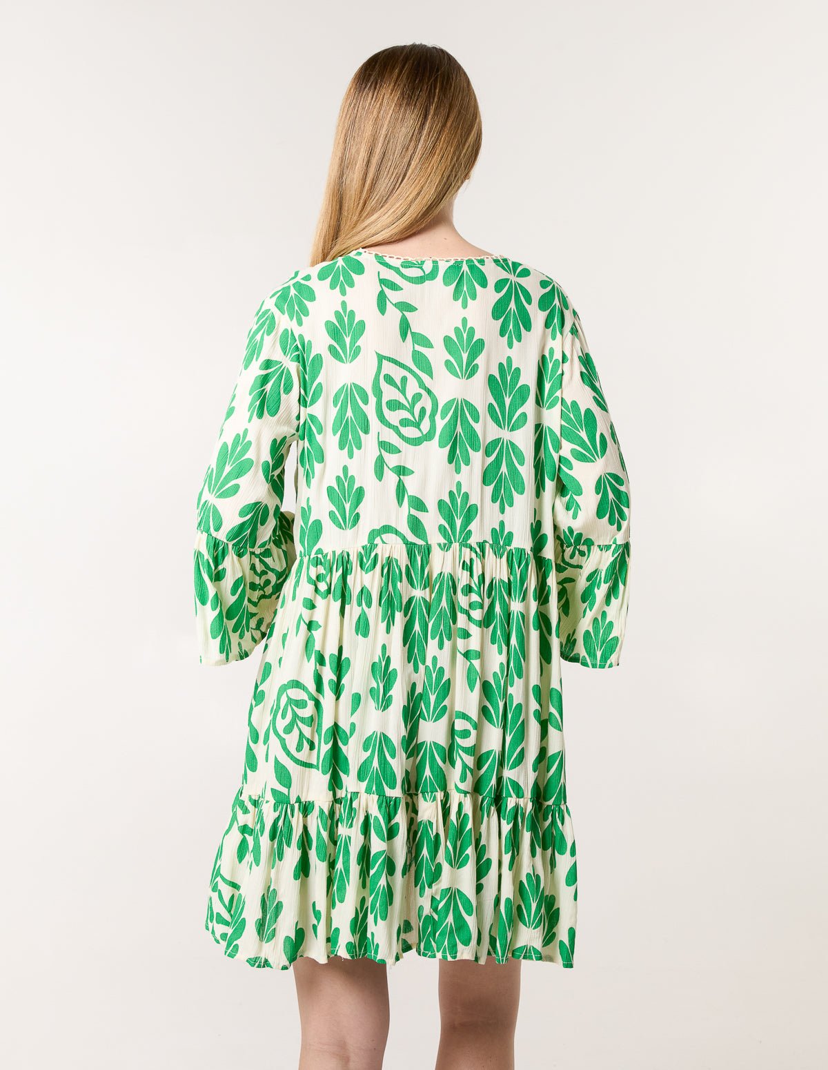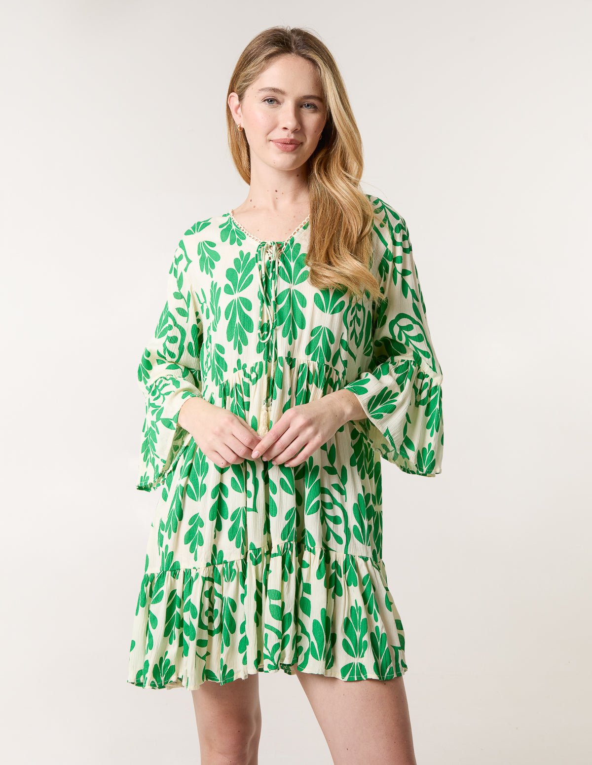 The dress that gives everything you need this summer time! This smock crochet detailed, printed mini dress will take you from sunny holidays, to work days stress-free. This do-it-all dress is a must for every summer wardrobe, grab yours now!