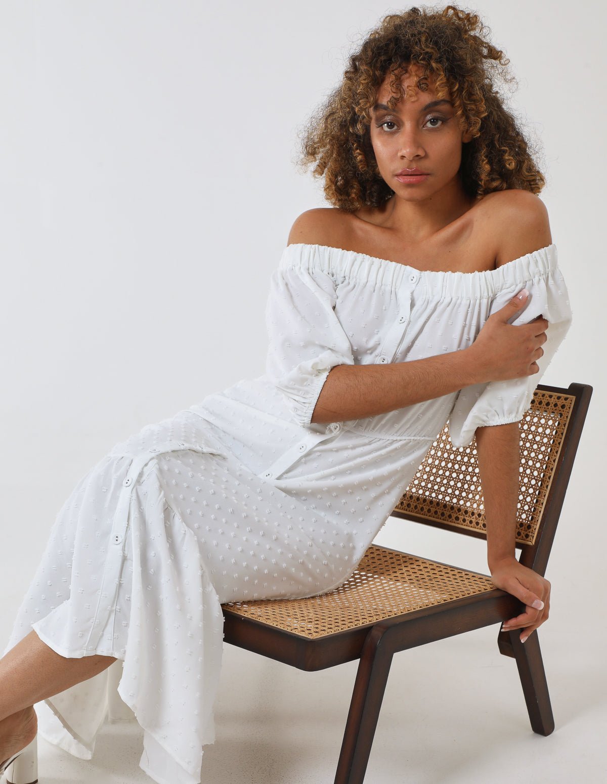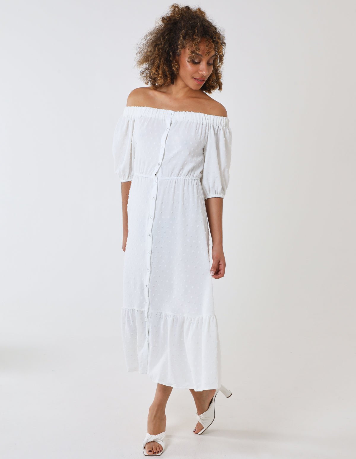 Enjoy a nice sunny day with this Bardot Button Through Midi Dress.