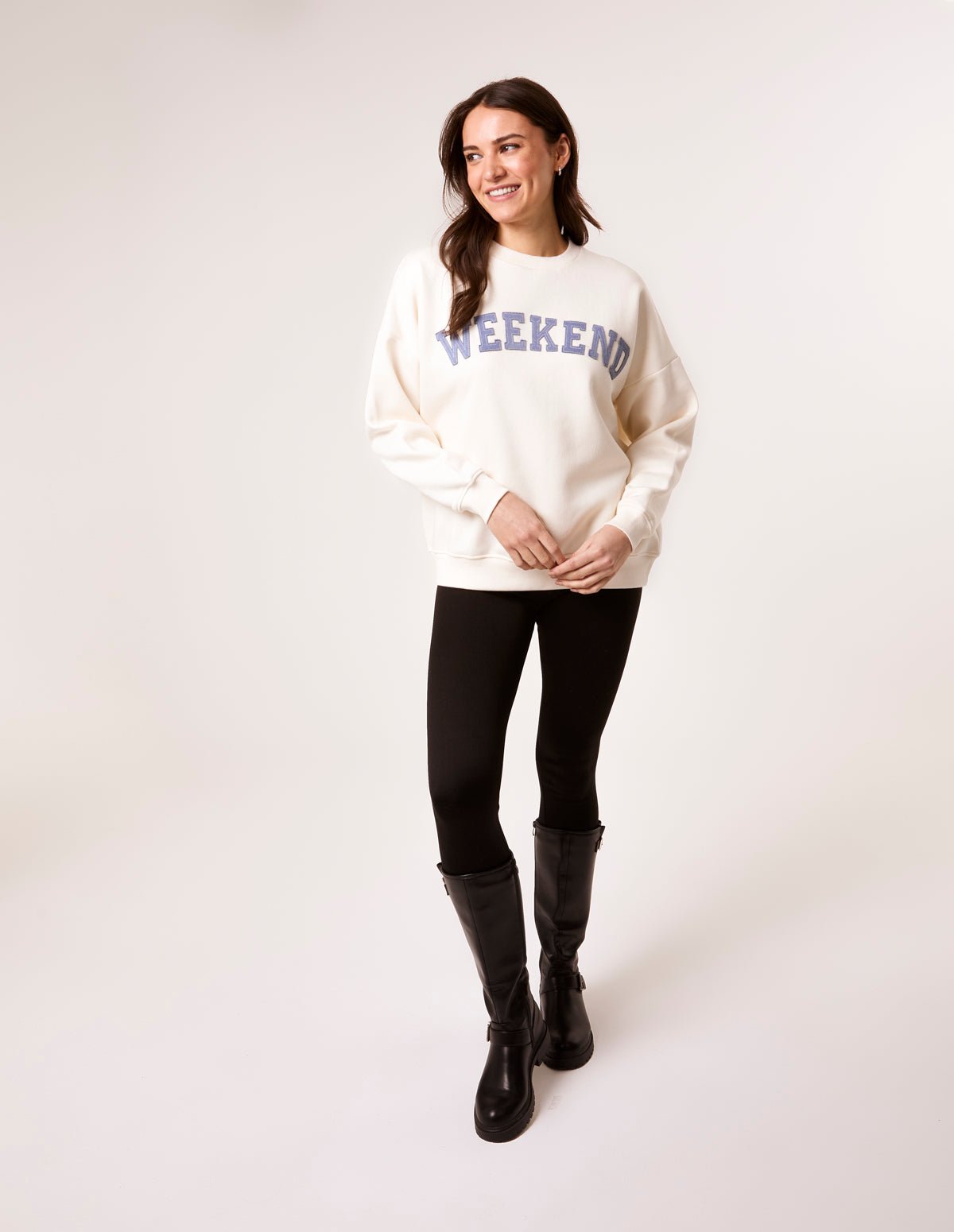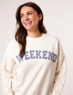The perfect sweater for cosy weekend indoors. This weekend slogan jumper provides all the comfort you need!