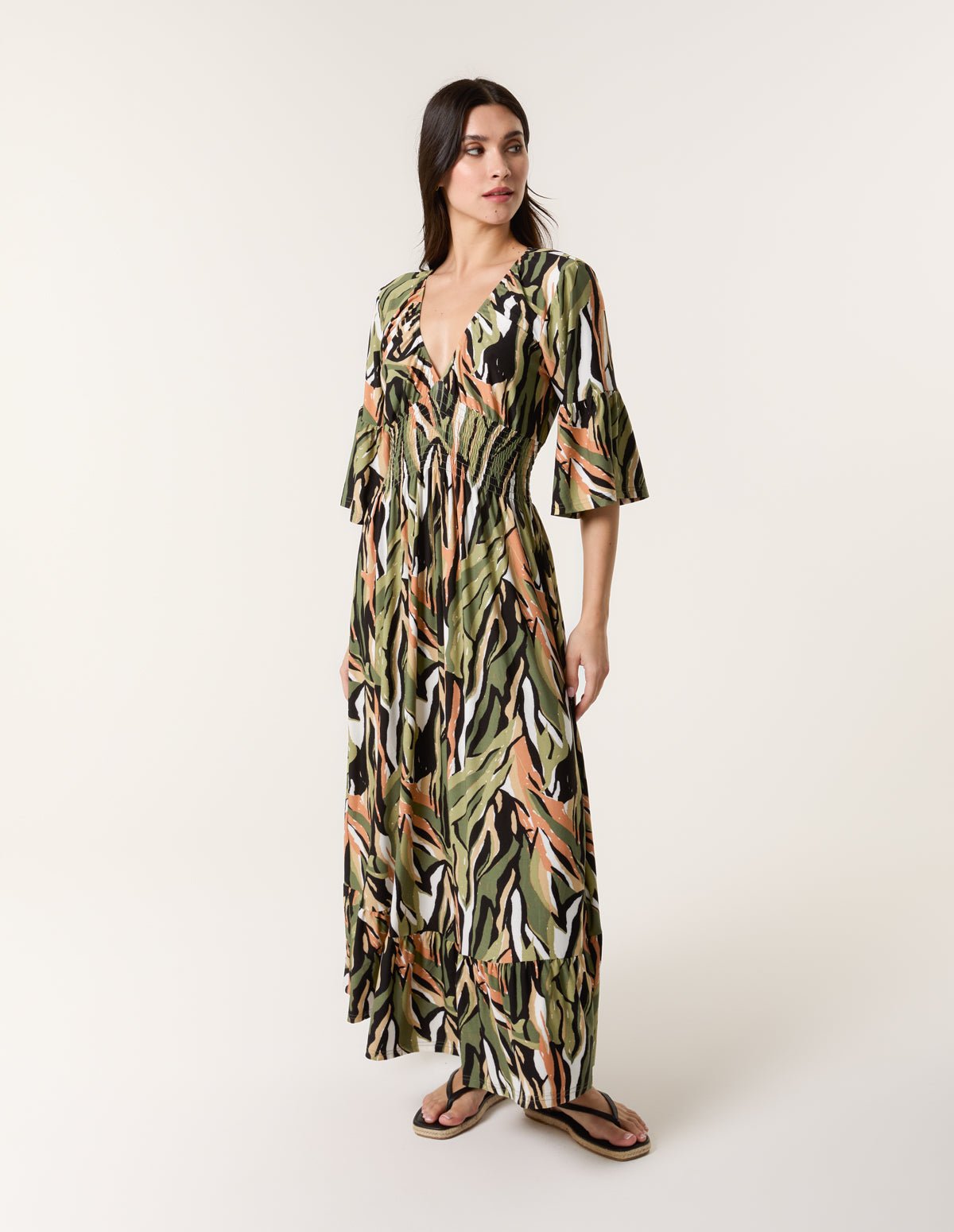 Elasticated Neck Shirred Waist Maxi Dress
