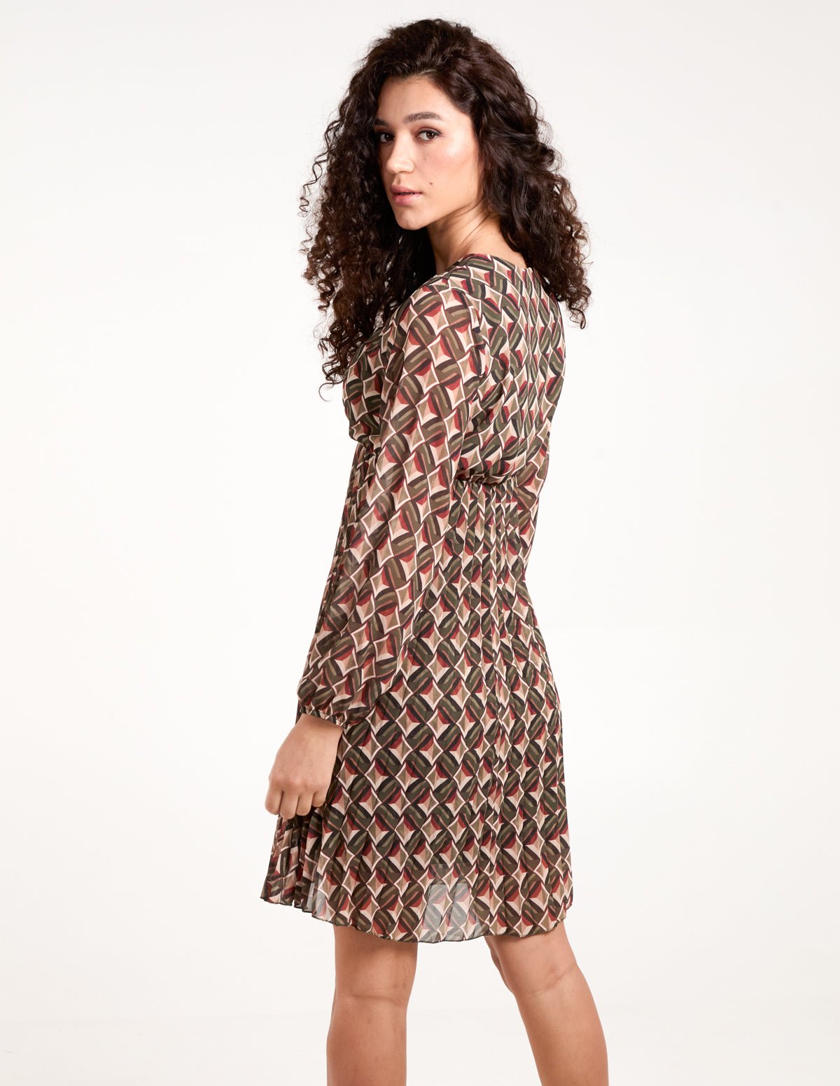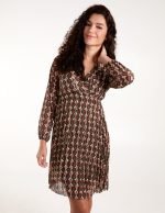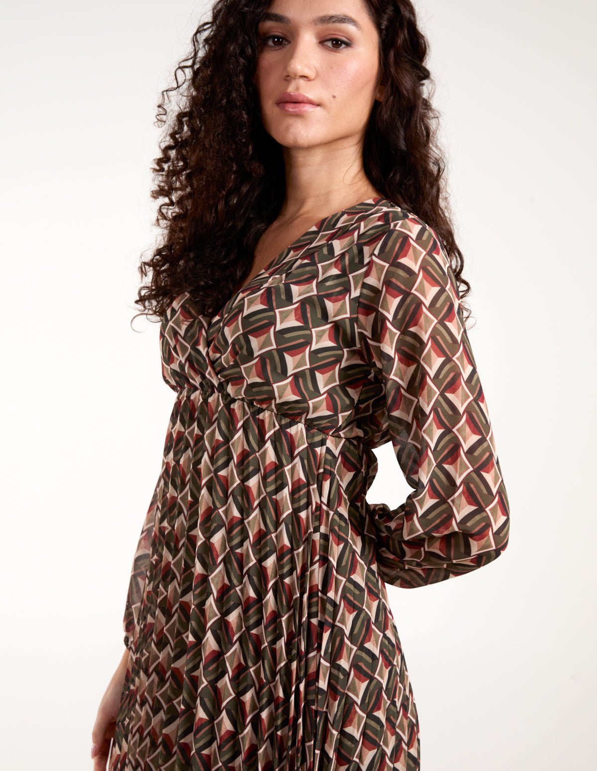 Geometric Print Wrap Front Pleated Dress