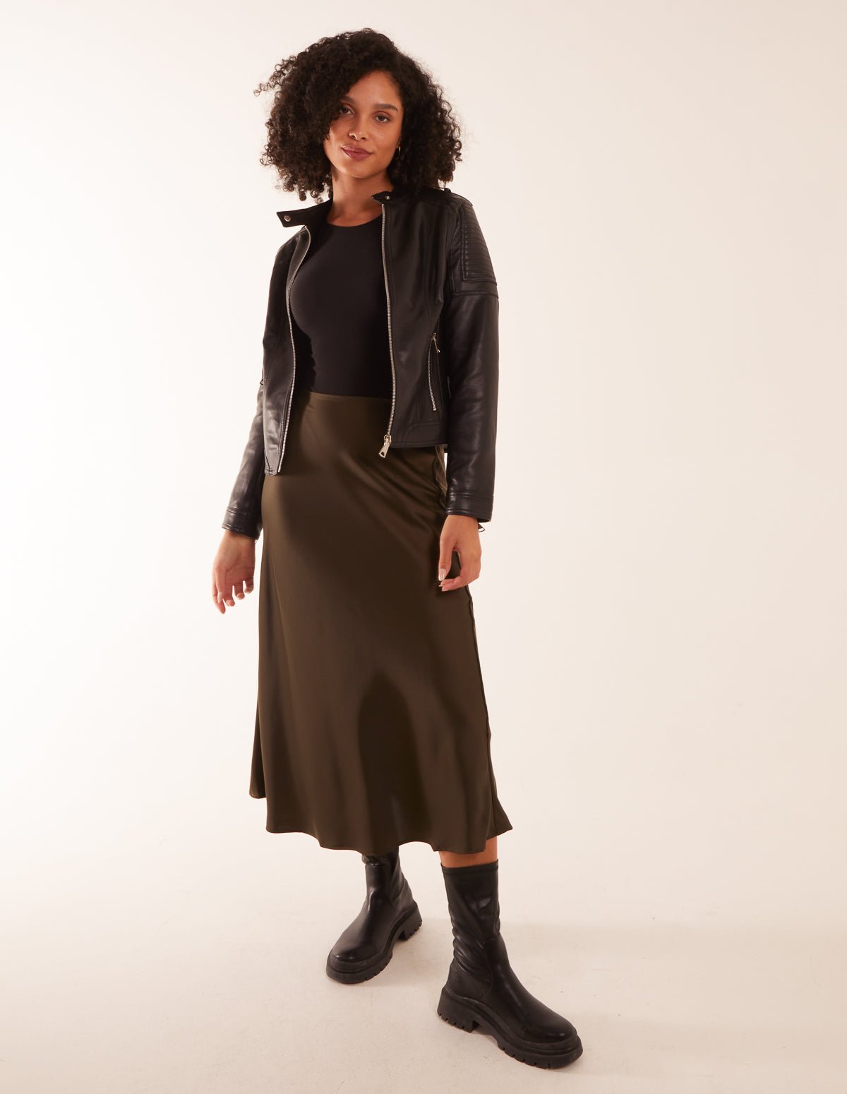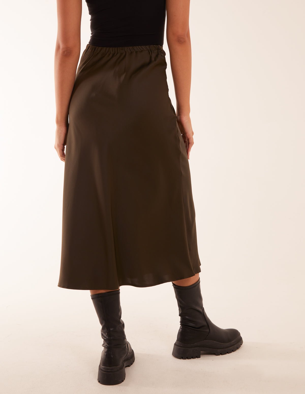 An elegant number to be worn on your next night out! This Satin Bias Midi Skirt can be teamed with a roll neck and kitten heels! Be ready to dance the night away in style!