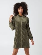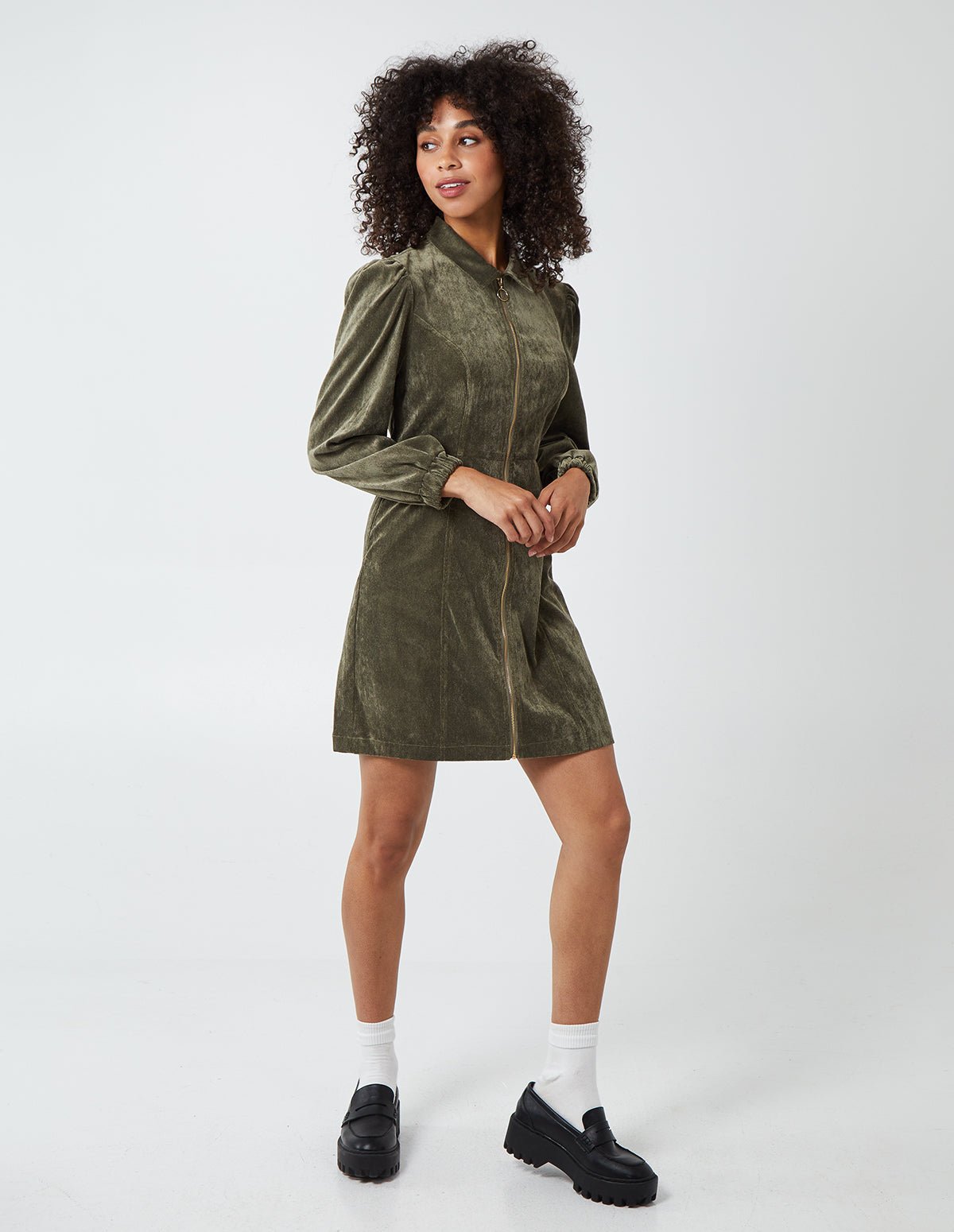 This cord front zip shirt dress is necessary in your wardrobe in this season. Will keep you warm and smart. Perfect to day to day wear. Match it with black long high boots.