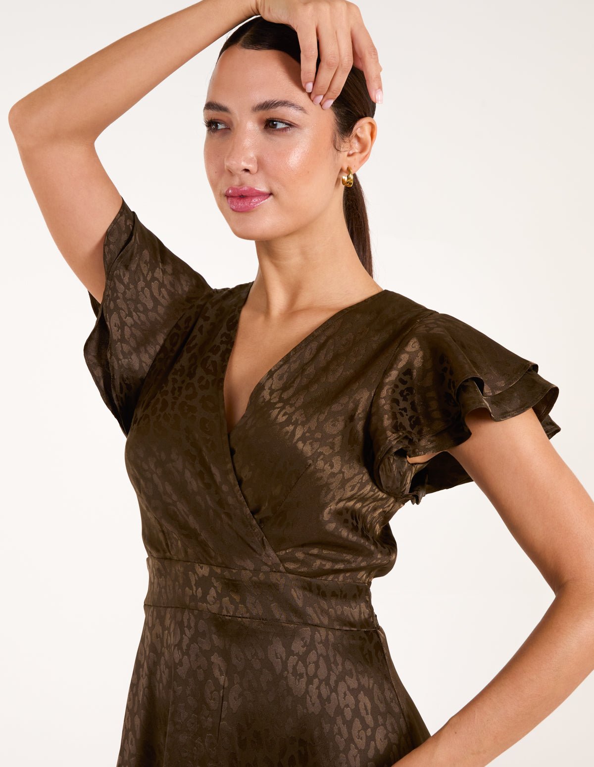 Taking you from morning meetings to out-of-office drinks in style this season! Team with leopard print frill sleeve dress with pumps for the perfect office wear outfit.