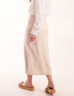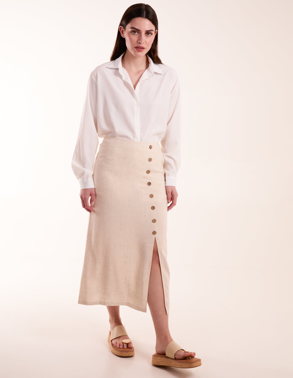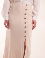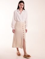 Linen Button Front Midi Skirt