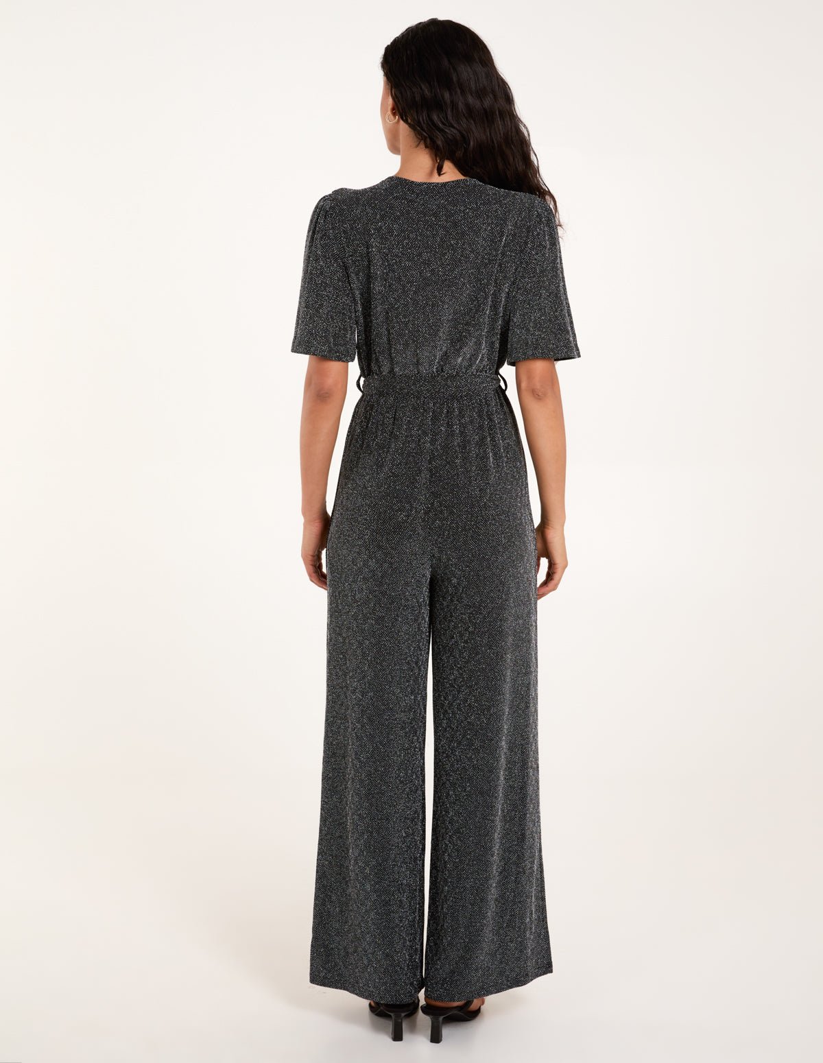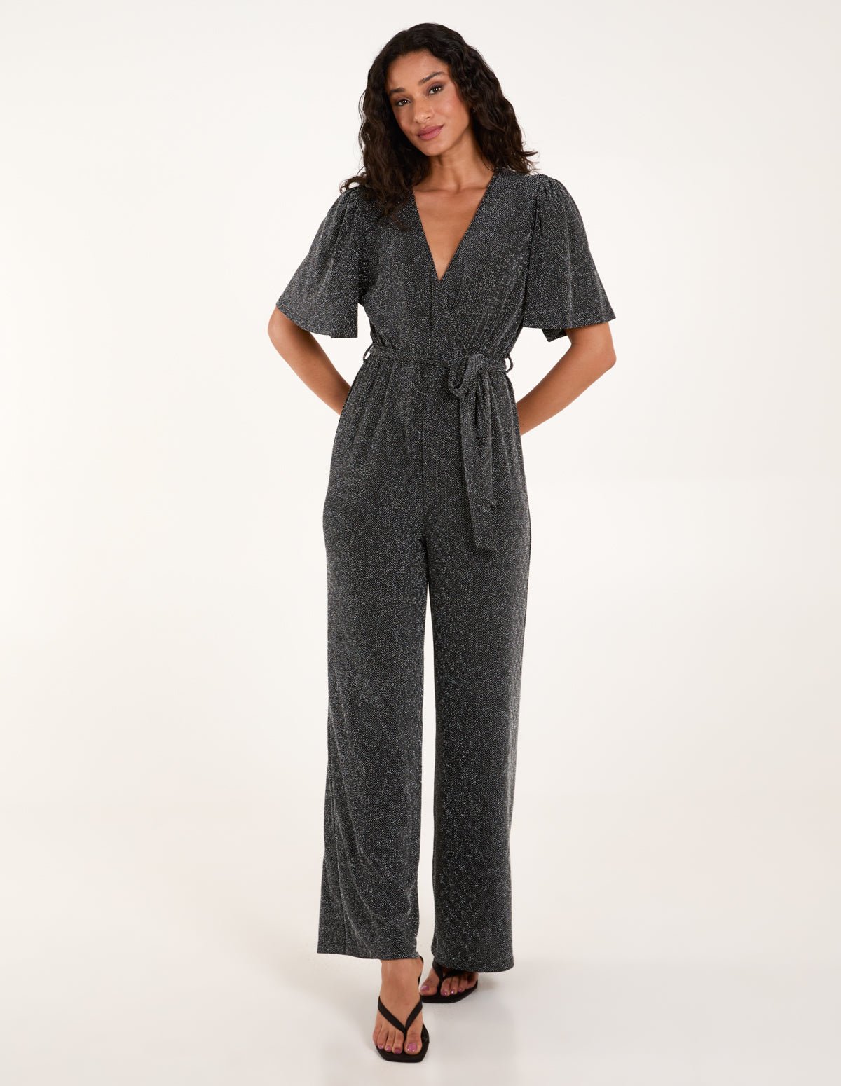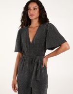 Up your glam level this partywear season wearing this lurex sparkly flared leg jumpsuit. Team with silver court heels and a red lip and nail fierce, sophistication all in one.