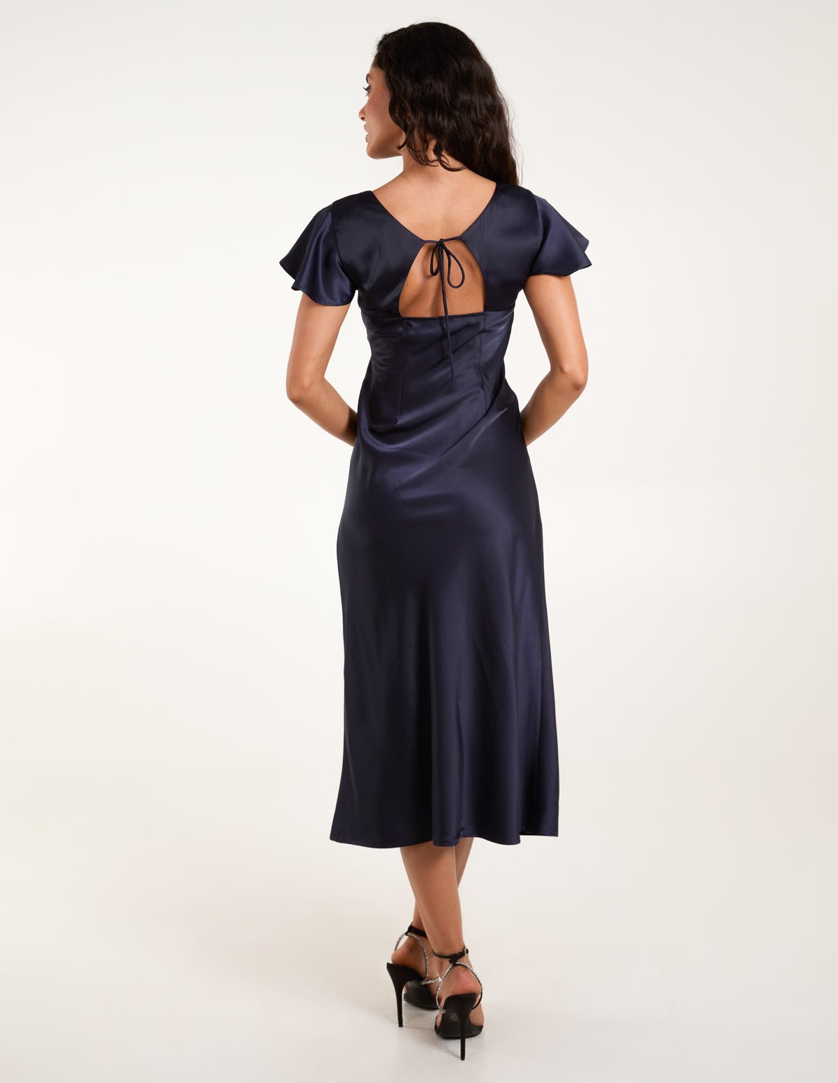 Slip straight into this party ready silky midi dress, with stunning bow open back detailing. Featuring a comfortable silky loose material. Style it with stiletto’s for ultimate glam.