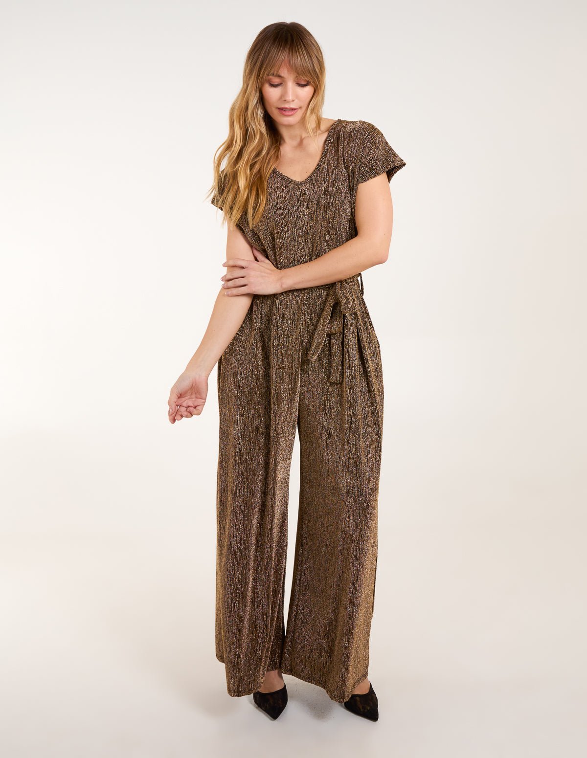 Metallic V Neck Jumpsuit
