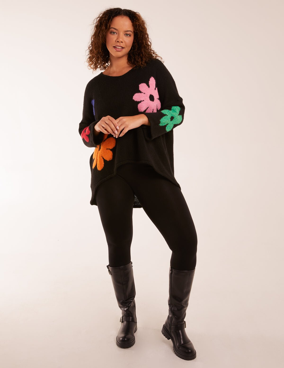Who said florals are for just for those warmer days? Add a touch of colour and fun to your knitwear wardrobe this season! Team this jumper with denim jeans and boots for a cosy every day look!