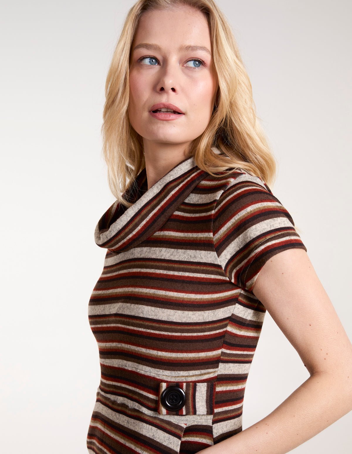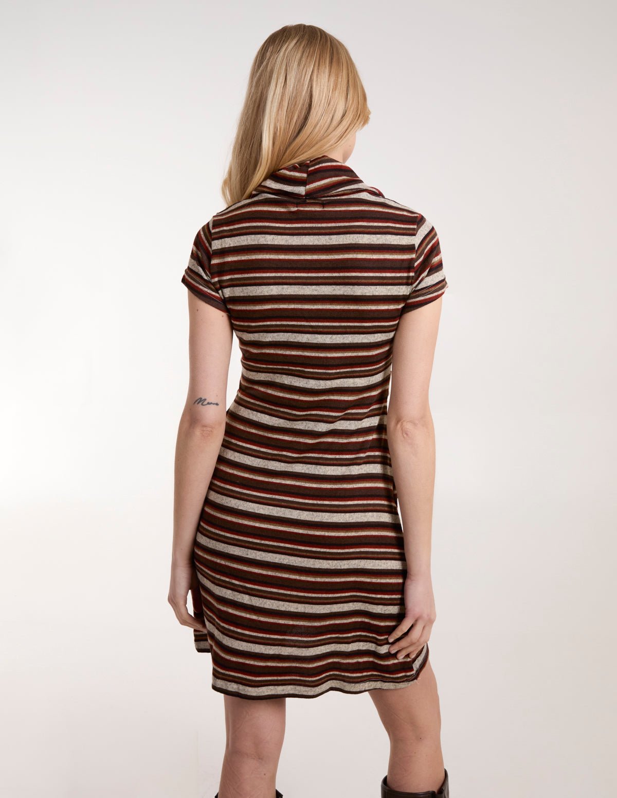 Introducing this multi coloured mini tunic dress, designed with an all-over stripe print and featuring a slouchy roll neckline. Wear with knee-high boots and statement jewellery for brunch with friends or keep it casual with trainers and your fave sunnies.