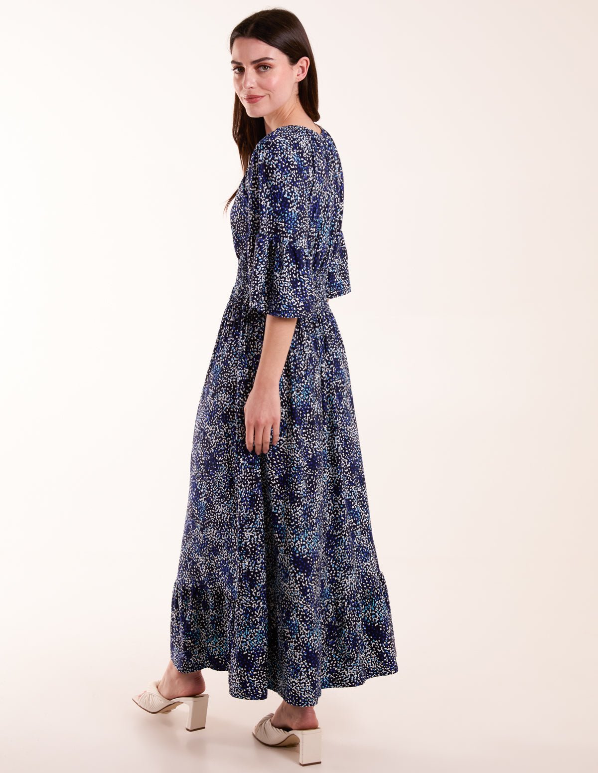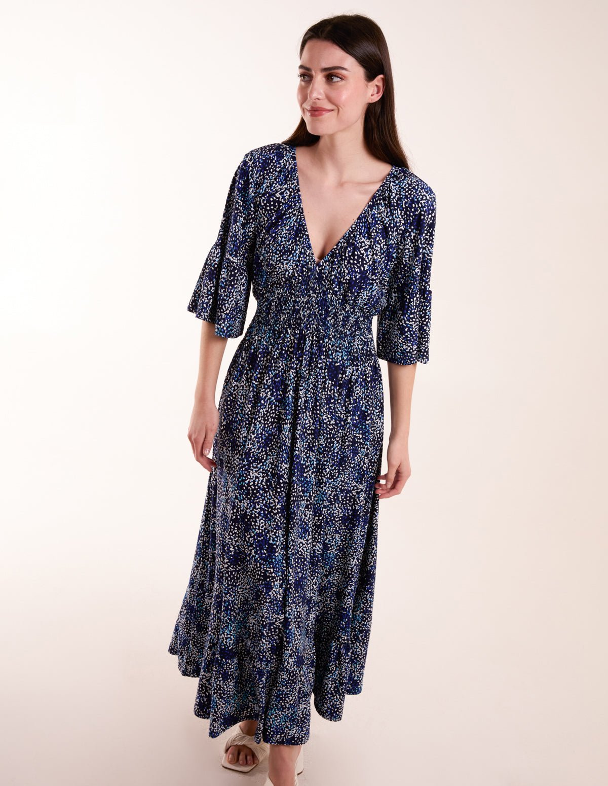 Elasticated Neck Shirred Waist Midi Dress