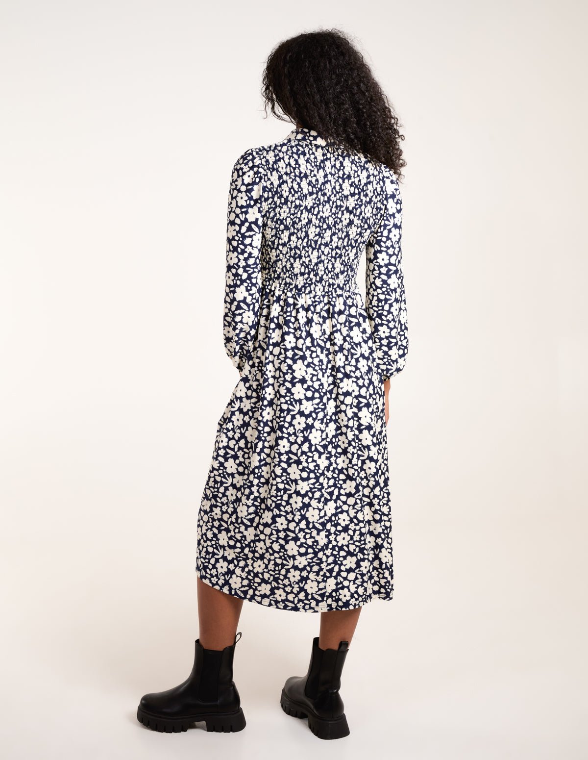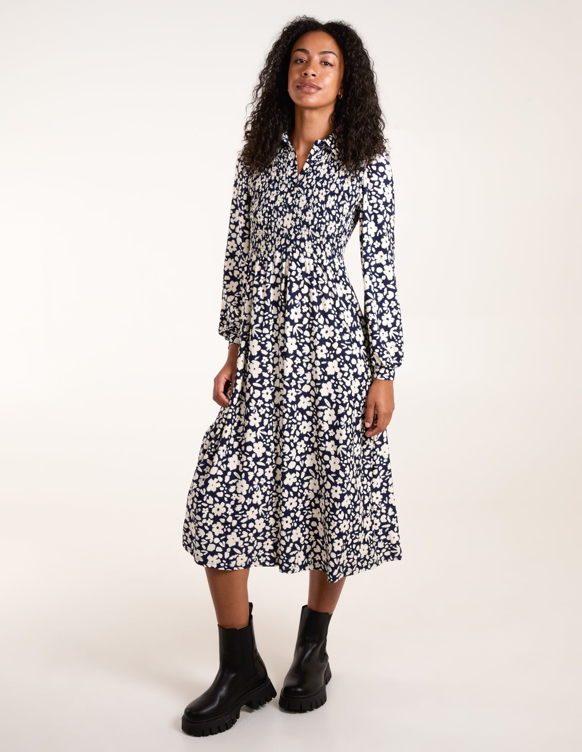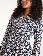 Floral Shirred Midi Shirt Dress