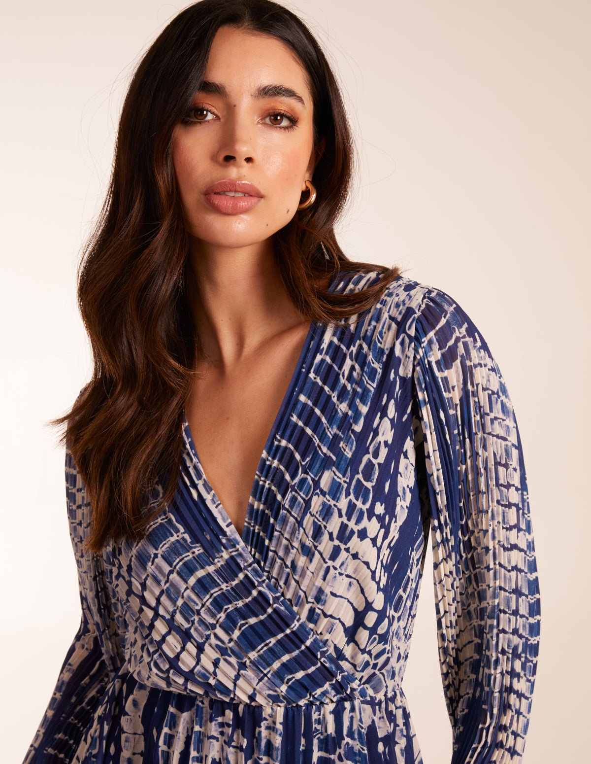 Pleated Abstract Snake Print Wrap Dress