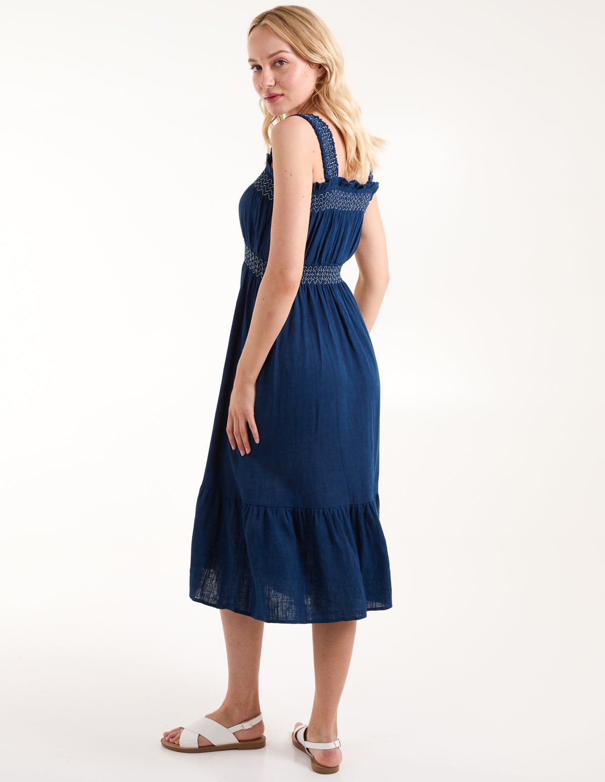 Shirred Detail Midi Dress