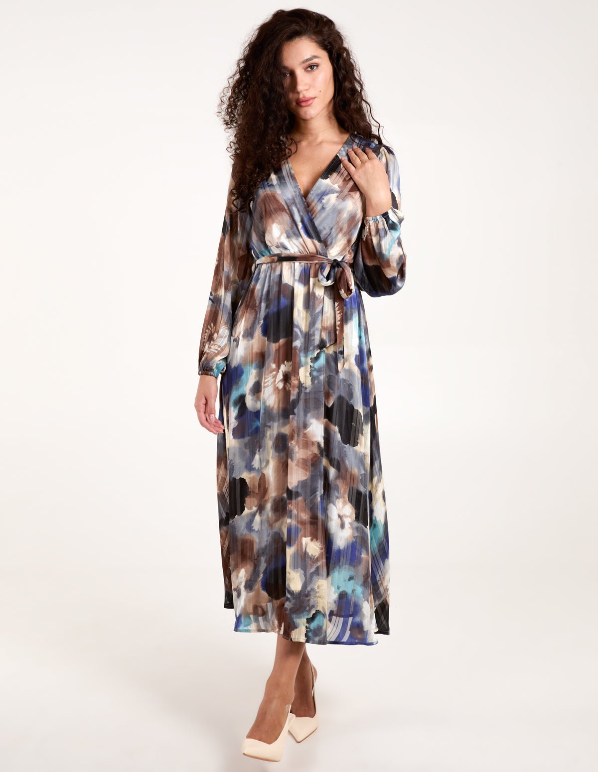 Watercolour Wrap Midi Dress