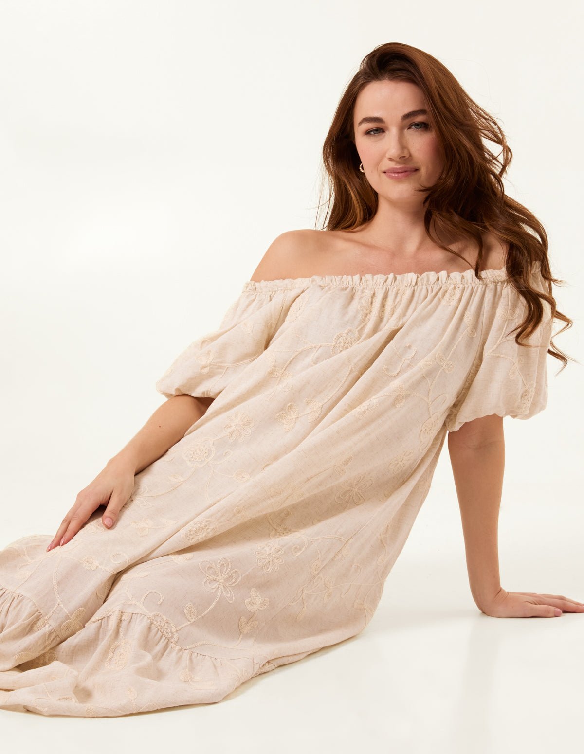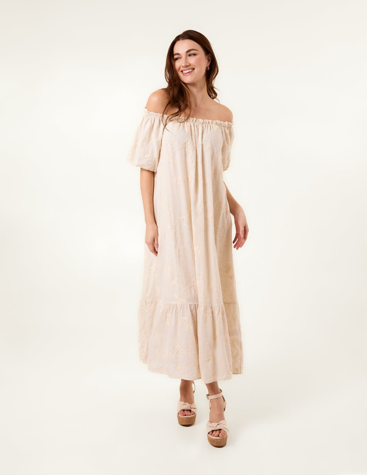 An oversized option that fits sizes 8-16, this linen bardot dress is the perfect dress to pack into the holiday suitcase.